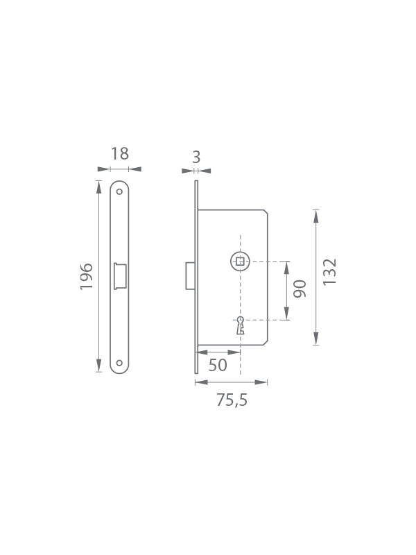 Dormas: 50 mm (vzdálenost osy kliky od lišty zámku)