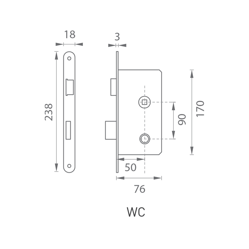Zadlabací zámek do dveří s otvorem pro WC klíč.