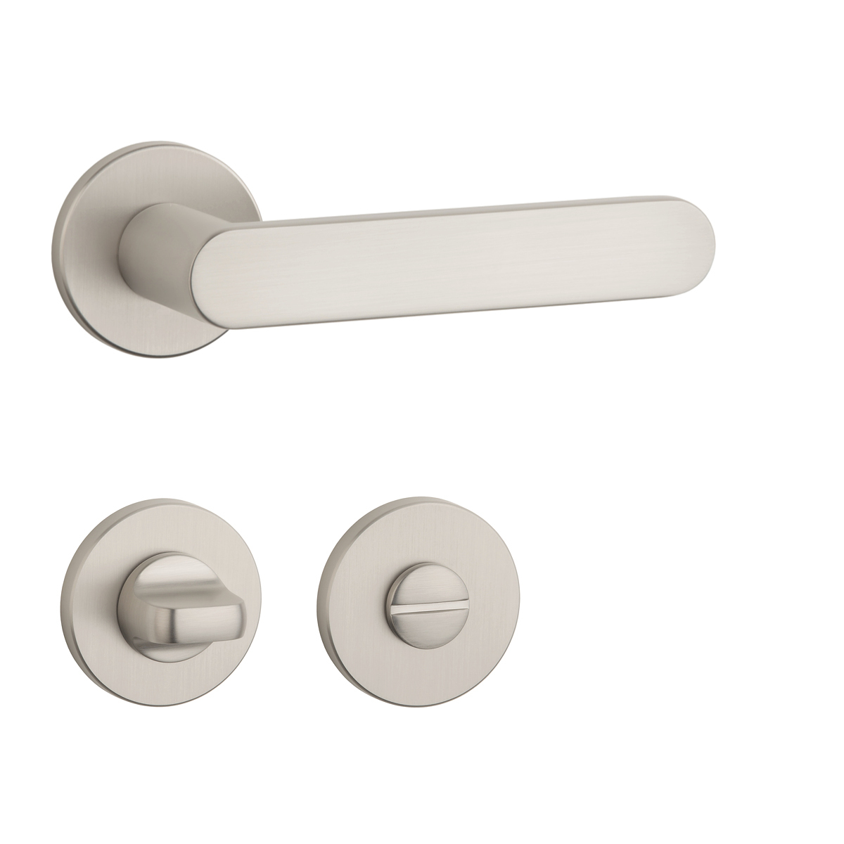 Rozetová klika na interiérové dveře s kulatou rozetou je vyrobena z materiálů vysoké kvality - zamak a je povrchově upravena. Rozeta má průměr 52 mm a tloušťku jen 7 mm. Minimalistický design rozety s vysokou stabilitou kliky na dveřích působí jemně, a tím ponechává prostor pro vyniknutí designu samotné kliky.