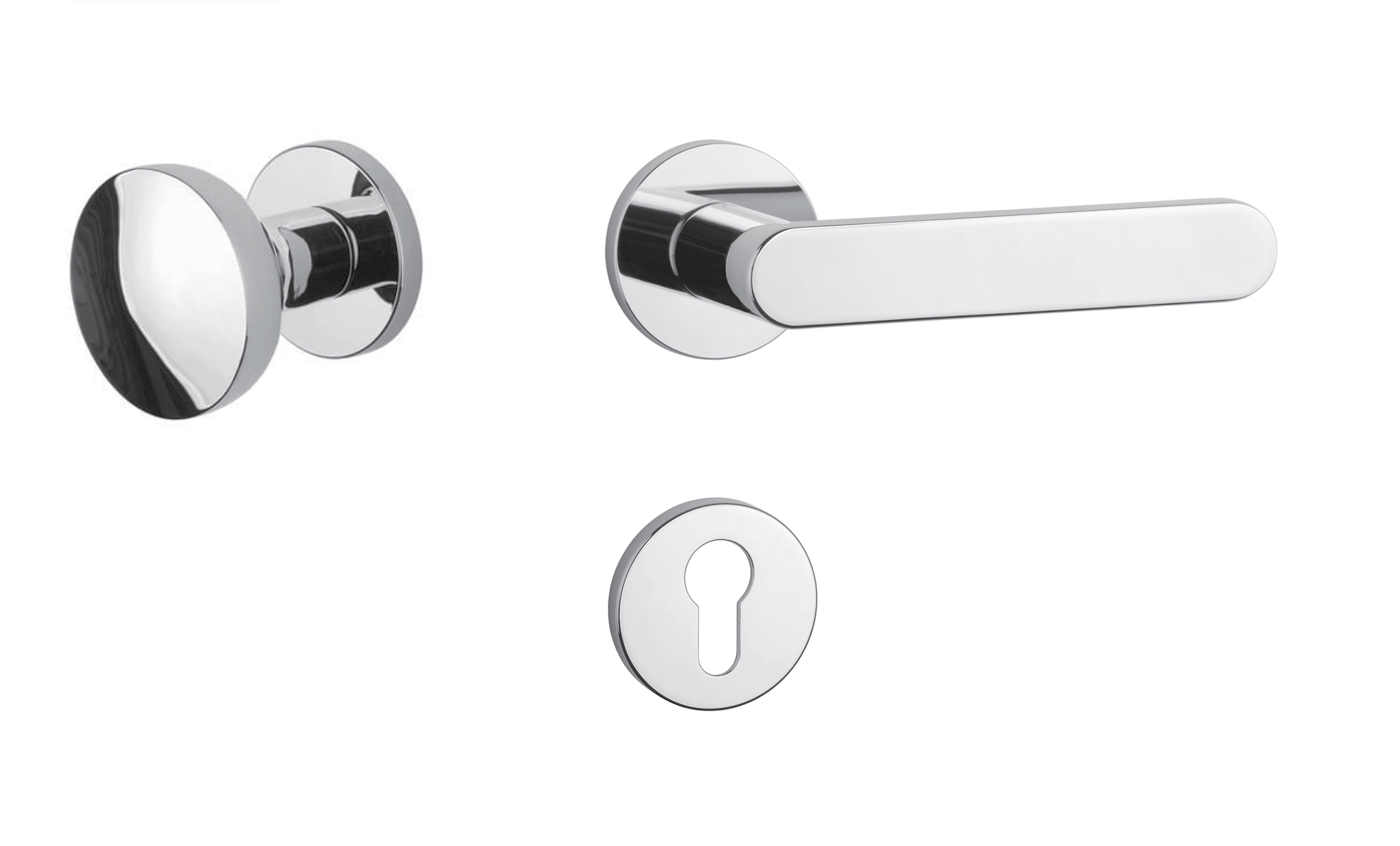 Rozetová klika na interiérové dveře s kulatou rozetou je vyrobena z materiálů vysoké kvality - zamak a je povrchově upravena. Rozeta má průměr 52 mm a tloušťku jen 7 mm. Minimalistický design rozety s vysokou stabilitou kliky na dveřích působí jemně, a tím ponechává prostor pro vyniknutí designu samotné kliky.