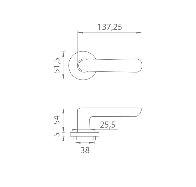 Rozetová klika na interiérové dveře s kulatou rozetou je vyrobena z materiálů vysoké kvality - zamak a je povrchově upravena. Rozeta má průměr 52 mm a tloušťku jen 5 mm. Minimalistický design rozety s vysokou stabilitou kliky na dveřích působí jemně, a tím ponechává prostor pro vyniknutí designu samotné kliky.