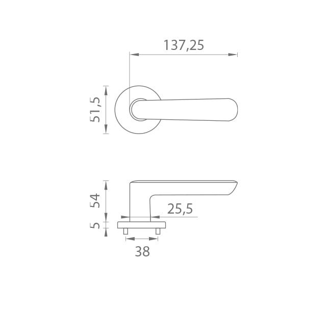 Rozetová klika na interiérové dveře s kulatou rozetou je vyrobena z materiálů vysoké kvality - zamak a je povrchově upravena. Rozeta má průměr 52 mm a tloušťku jen 5 mm. Minimalistický design rozety s vysokou stabilitou kliky na dveřích působí jemně, a tím ponechává prostor pro vyniknutí designu samotné kliky.