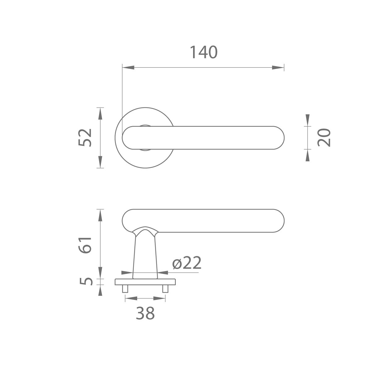 Rozetová klika na interiérové dveře s kulatou rozetou je vyrobená z materiálů vysoké kvality - zamak a je povrchově upravená. Rozeta má průměr 52 mm a tloušťku jen 5 mm. Minimalistický design rozety s vysokou stabilitou kliky na dveřích působí jemně, a tím ponechává prostor pro vyniknutí designu samotné kliky.