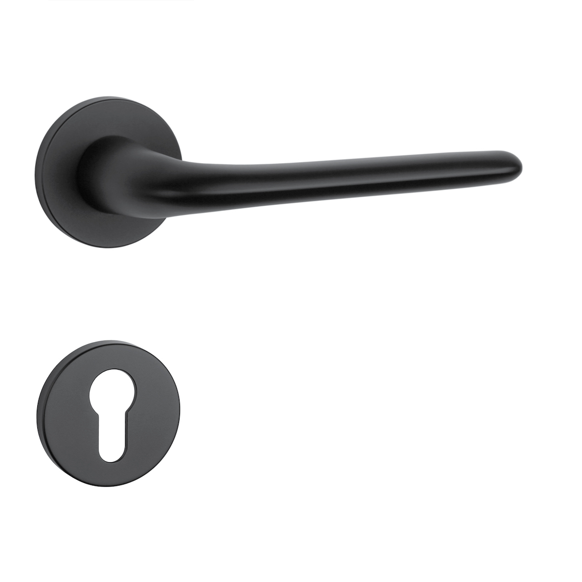 Rozetová klika na interiérové dveře s kulatou rozetou je vyrobena z materiálů vysoké kvality - zamak a je povrchově upravena. Rozeta má průměr 52 mm a tloušťku jen 7 mm. Minimalistický design rozety s vysokou stabilitou kliky na dveřích působí jemně, a tím ponechává prostor pro vyniknutí designu samotné kliky.