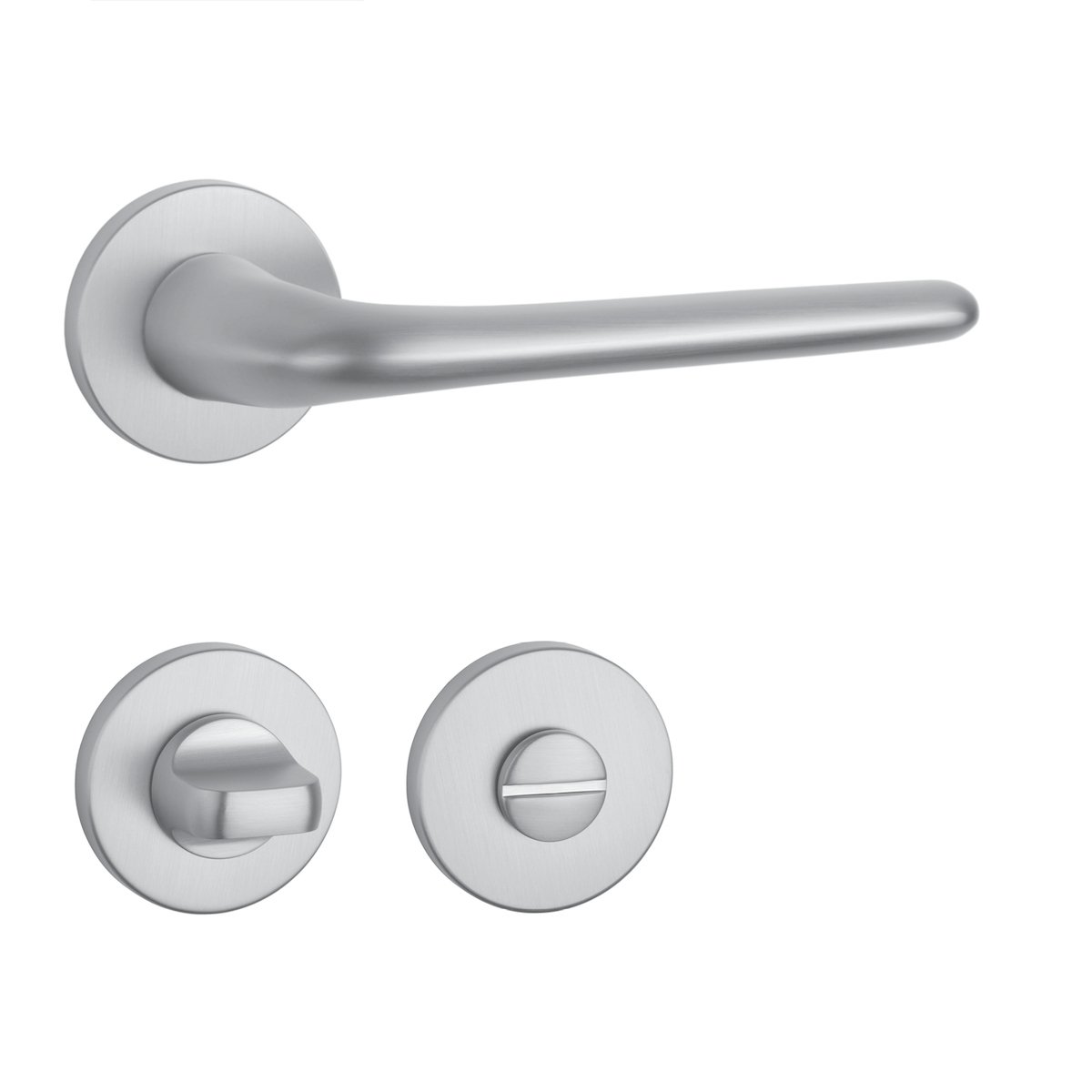 Rozetová klika na interiérové dveře s kulatou rozetou je vyrobena z materiálů vysoké kvality - zamak a je povrchově upravena. Rozeta má průměr 52 mm a tloušťku jen 7 mm. Minimalistický design rozety s vysokou stabilitou kliky na dveřích působí jemně, a tím ponechává prostor pro vyniknutí designu samotné kliky.