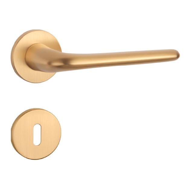 Rozetová klika na interiérové dveře s kulatou rozetou je vyrobena z materiálů vysoké kvality - zamak a je povrchově upravena. Rozeta má průměr 52 mm a tloušťku jen 7 mm. Minimalistický design rozety s vysokou stabilitou kliky na dveřích působí jemně, a tím ponechává prostor pro vyniknutí designu samotné kliky.