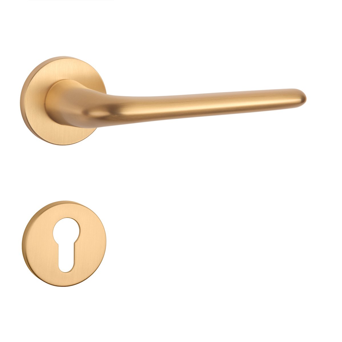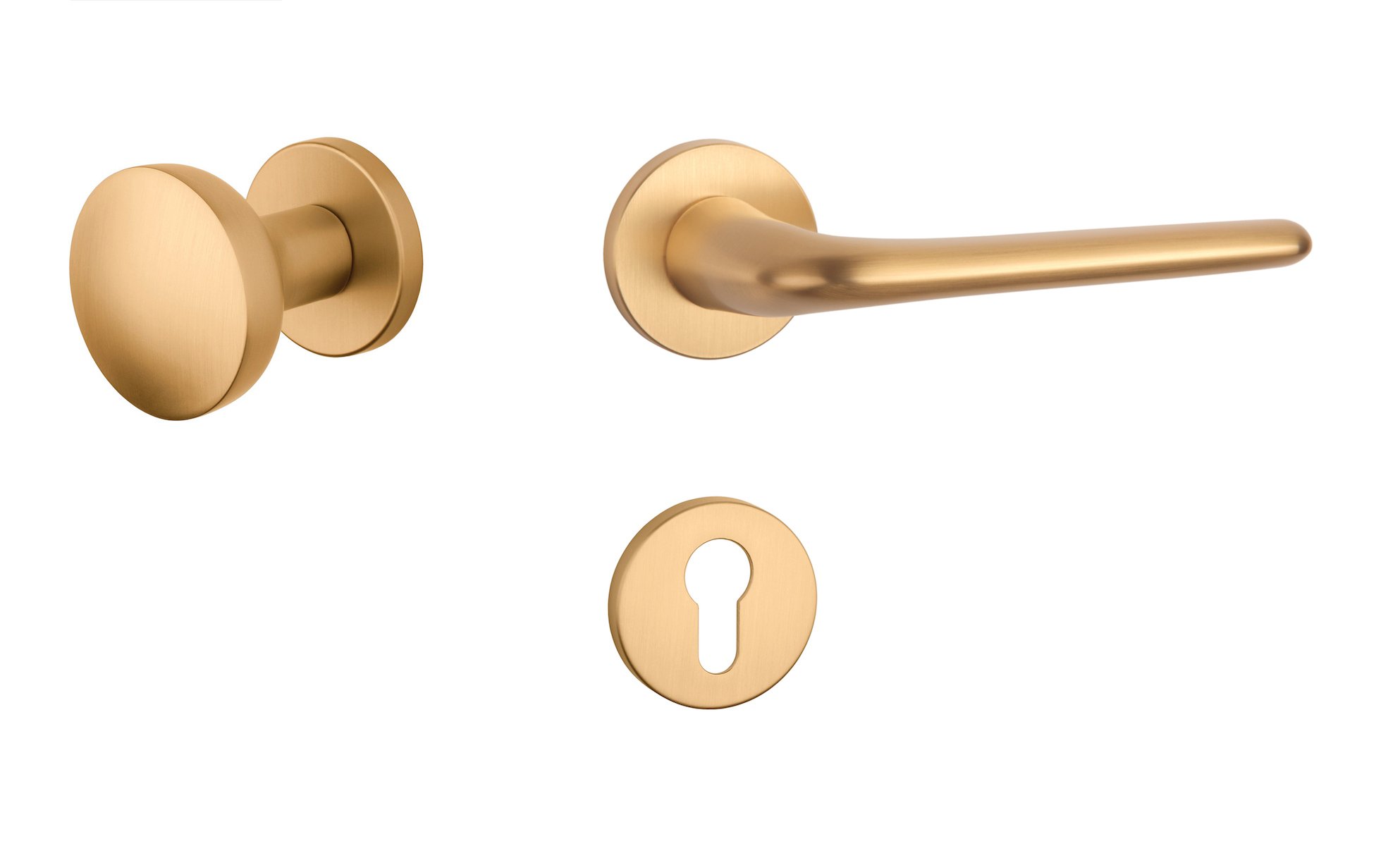 Rozetová klika na interiérové dveře s kulatou rozetou je vyrobena z materiálů vysoké kvality - zamak a je povrchově upravena. Rozeta má průměr 52 mm a tloušťku jen 7 mm. Minimalistický design rozety s vysokou stabilitou kliky na dveřích působí jemně, a tím ponechává prostor pro vyniknutí designu samotné kliky.