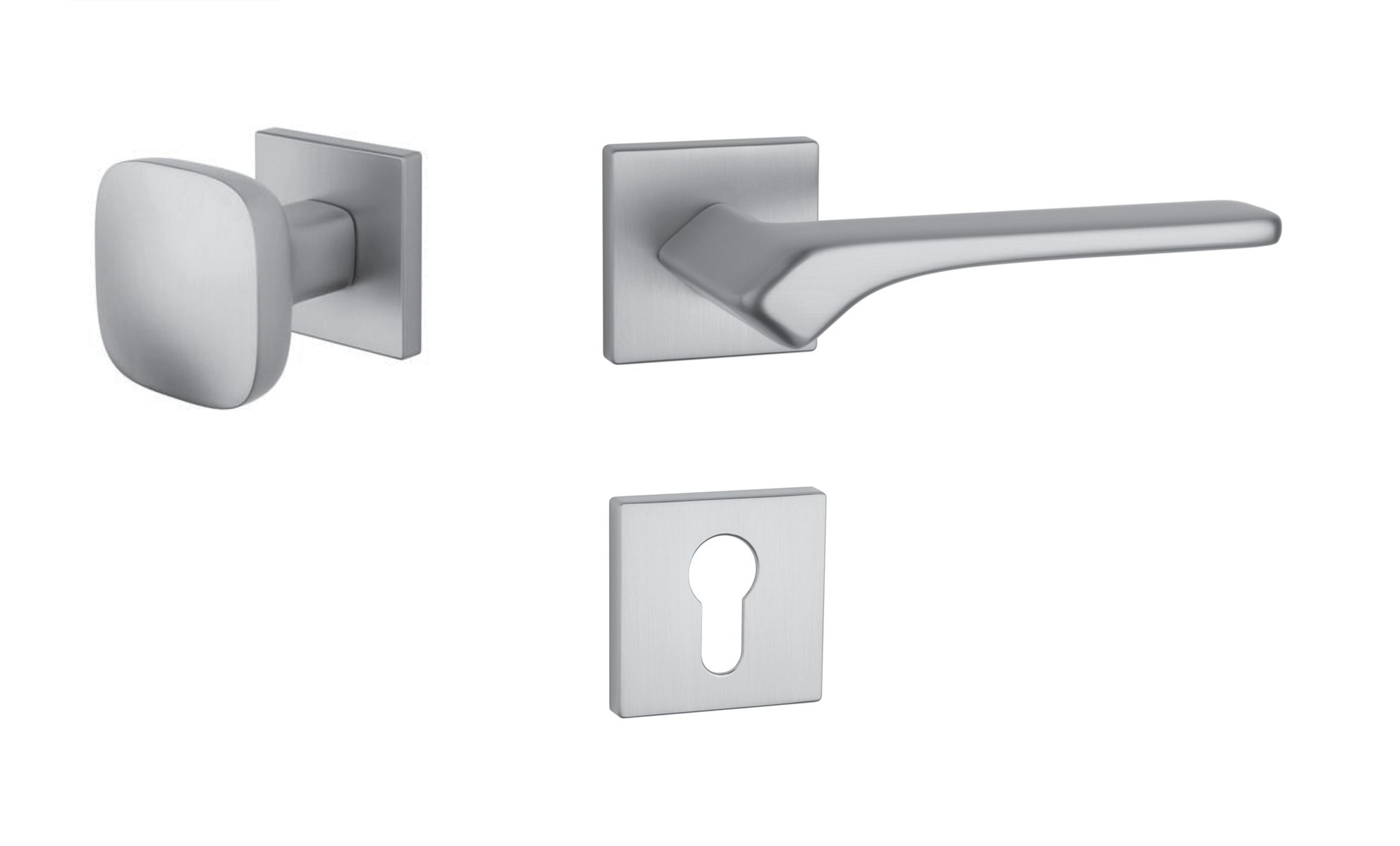 Rozetová klika na interiérové dveře s hranatou rozetou je vyrobena z materiálů vysoké kvality - zamak a je povrchově upravena. Rozeta má rozměr 52x52 mm a tloušťku jen 7 mm.