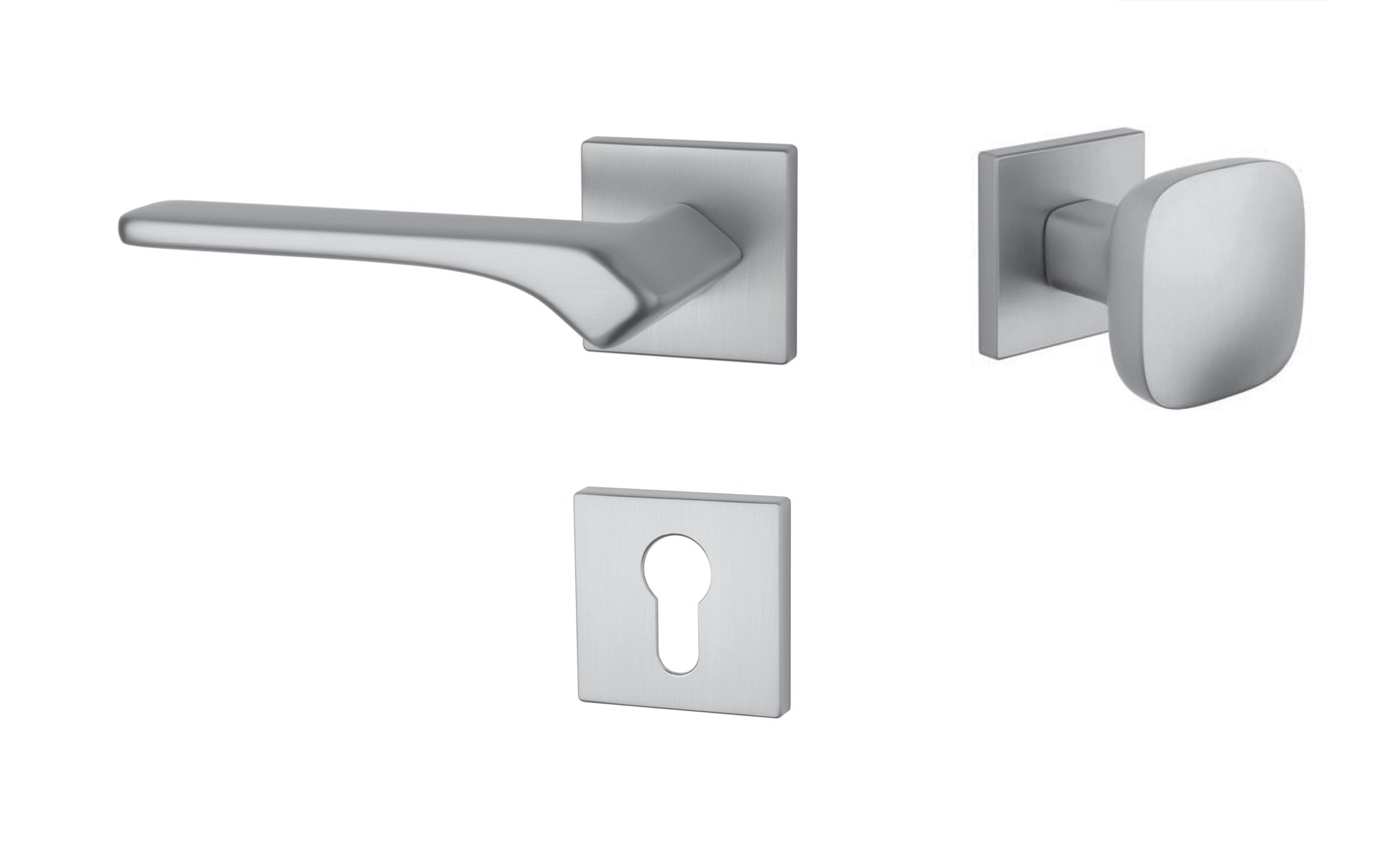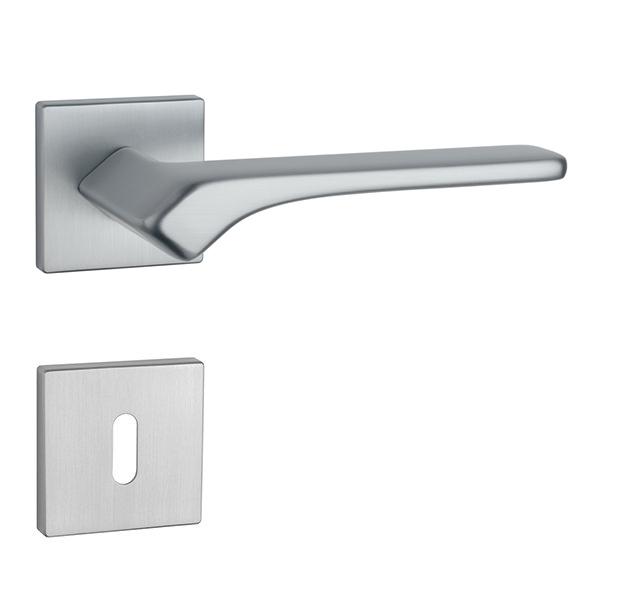 Rozetová klika na interiérové dveře s hranatou rozetou je vyrobena z materiálů vysoké kvality - zamak a je povrchově upravena. Rozeta má rozměr 52x52 mm a tloušťku jen 7 mm.
