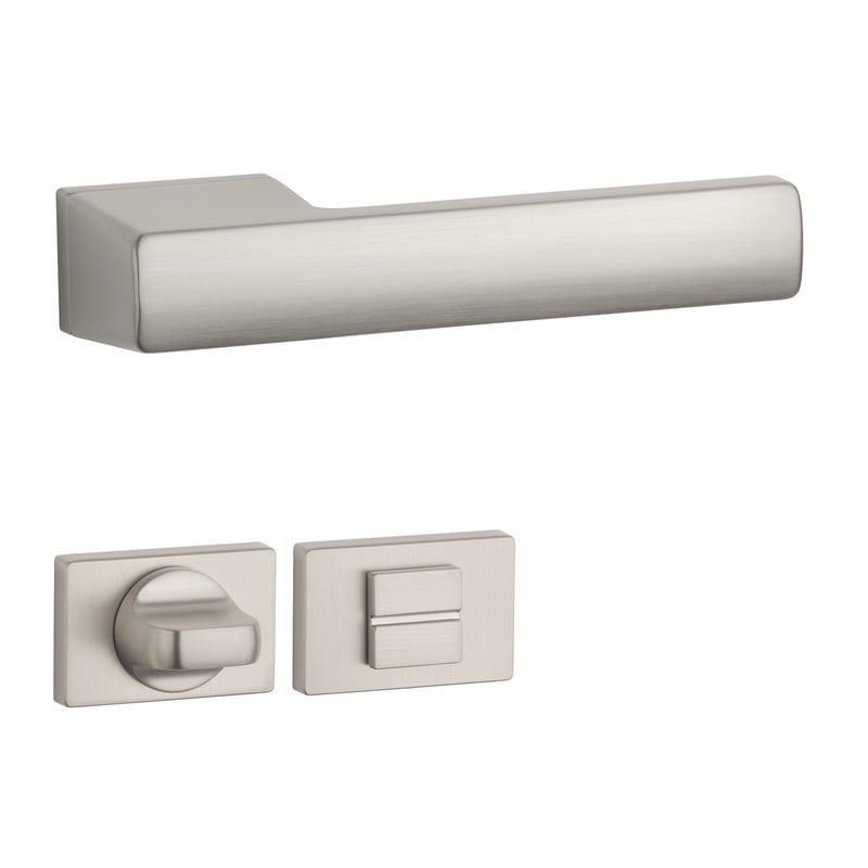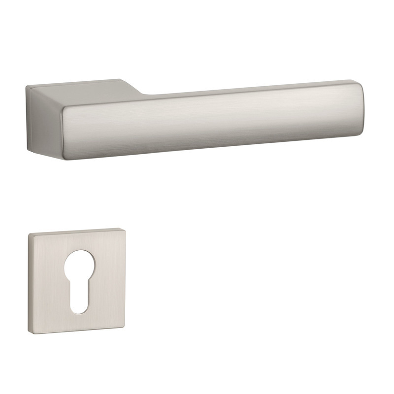 Rozetová klika na interiérové dveře s obdélníkovou rozetou je vyrobena z materiálů vysoké kvality - zamak a je povrchově upravena. Rozeta má rozměr 52 x 33 mm a tloušťku jen 7 mm. Minimalistický design rozety s vysokou stabilitou kliky na dveřích působí jemně, a tím ponechává prostor pro vyniknutí designu samotné kliky.