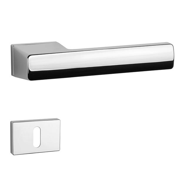 Rozetová klika na interiérové dveře s obdélníkovou rozetou je vyrobena z materiálů vysoké kvality - zamak a je povrchově upravena. Rozeta má rozměr 52 x 33 mm a tloušťku jen 7 mm. Minimalistický design rozety s vysokou stabilitou kliky na dveřích působí jemně, a tím ponechává prostor pro vyniknutí designu samotné kliky.