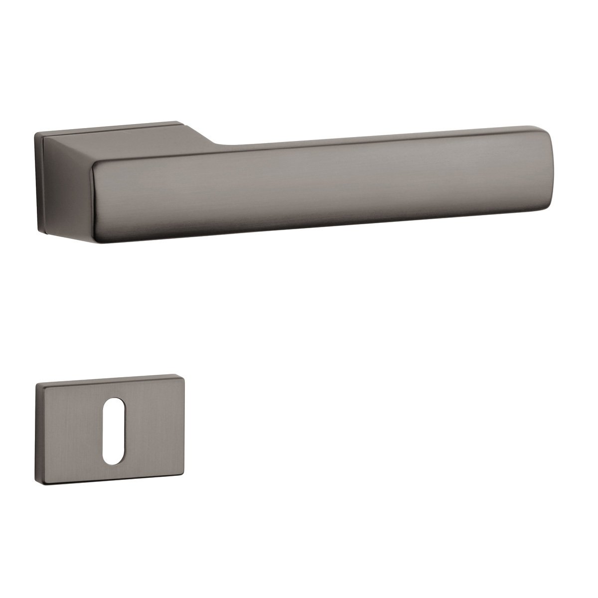 Rozetová klika na interiérové dveře s obdélníkovou rozetou je vyrobena z materiálů vysoké kvality - zamak a je povrchově upravena. Rozeta má rozměr 52 x 33 mm a tloušťku jen 7 mm. Minimalistický design rozety s vysokou stabilitou kliky na dveřích působí jemně, a tím ponechává prostor pro vyniknutí designu samotné kliky.