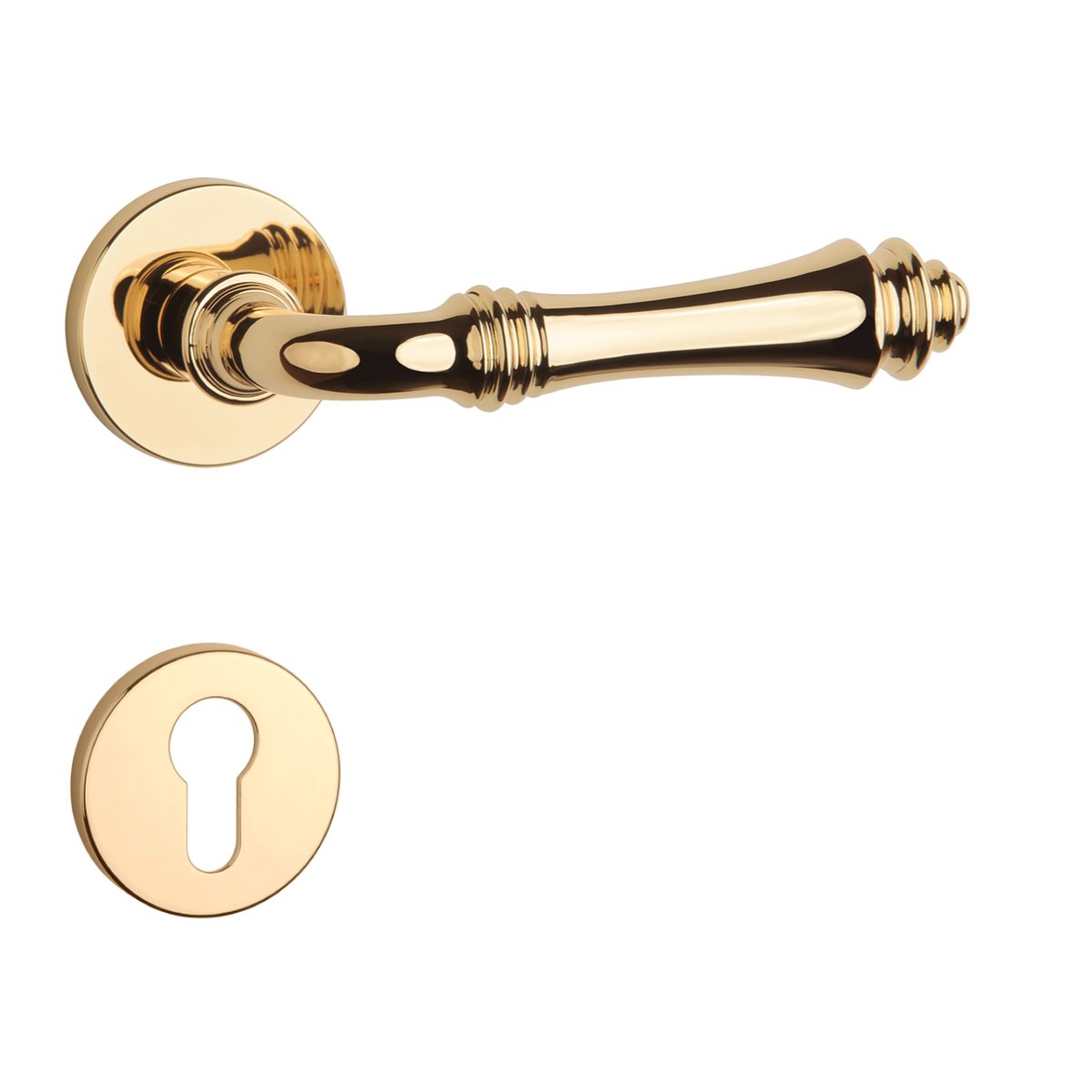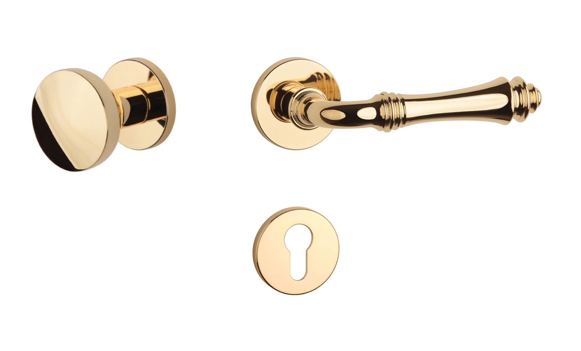 Rozetová klika na interiérové dveře s kulatou rozetou je vyrobena z materiálů vysoké kvality - zamak a je povrchově upravena. Rozeta má průměr 52 mm a tloušťku jen 7 mm. Minimalistický design rozety s vysokou stabilitou kliky na dveřích působí jemně, a tím ponechává prostor pro vyniknutí designu samotné kliky.