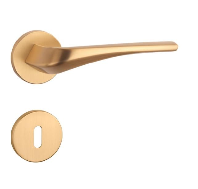 Rozetová klika na interiérové dveře s kulatou rozetou je vyrobena z materiálů vysoké kvality - zamak a je povrchově upravena. Rozeta má průměr 52 mm a tloušťku jen 7 mm. Minimalistický design rozety s vysokou stabilitou kliky na dveřích působí jemně, a tím ponechává prostor pro vyniknutí designu samotné kliky.