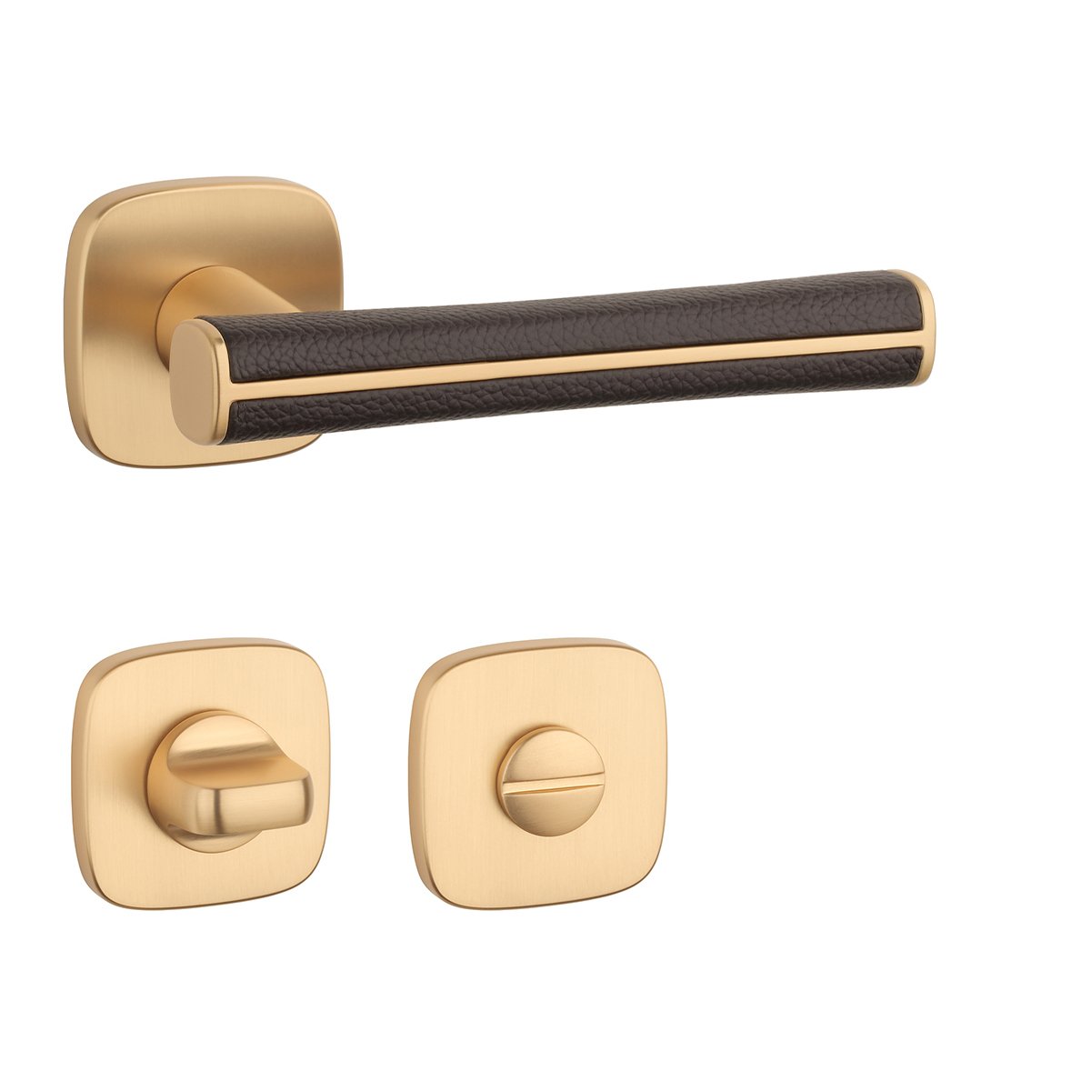 AS - DAVIDIA - QR 7S OLS - Mosaz broušená / hnědá kůže - rozety WC - klika/klika