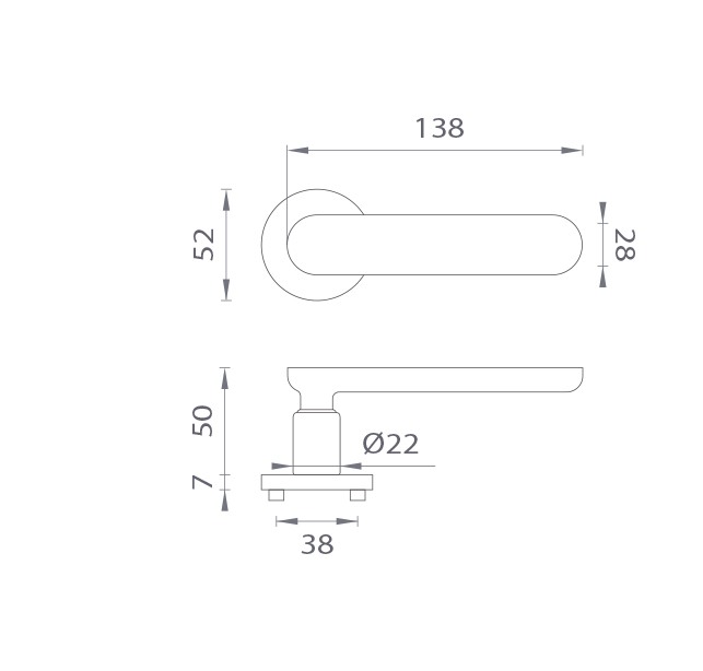Rozetová klika na interiérové dveře s kulatou rozetou je vyrobena z materiálů vysoké kvality - zamak a je povrchově upravena. Rozeta má průměr 52 mm a tloušťku jen 7 mm. Minimalistický design rozety s vysokou stabilitou kliky na dveřích působí jemně, a tím ponechává prostor pro vyniknutí designu samotné kliky.