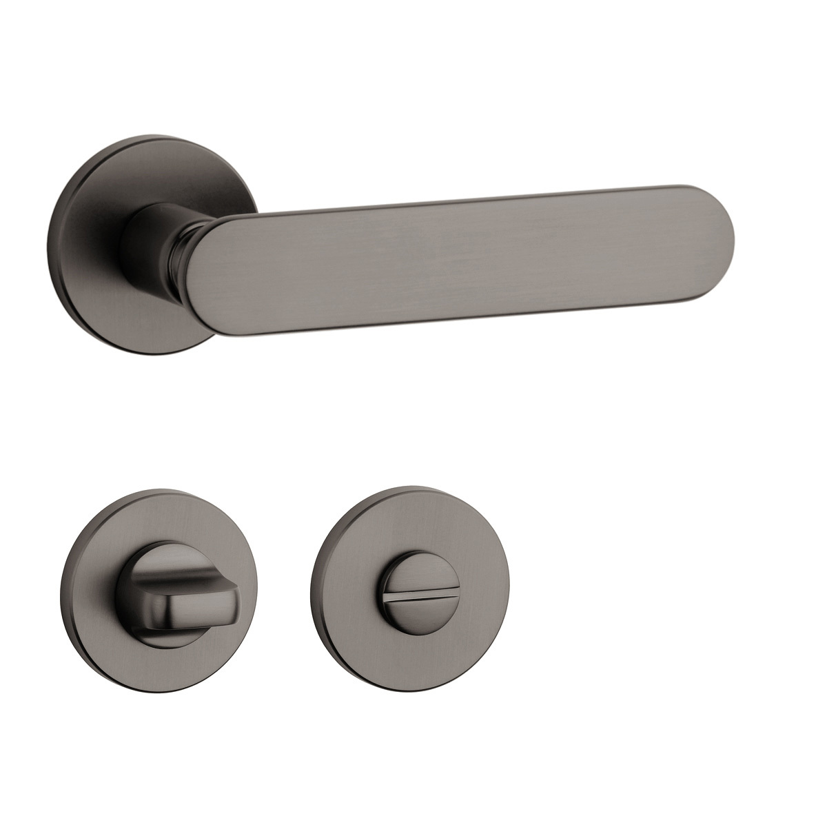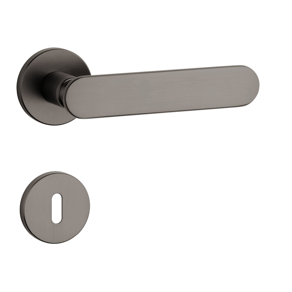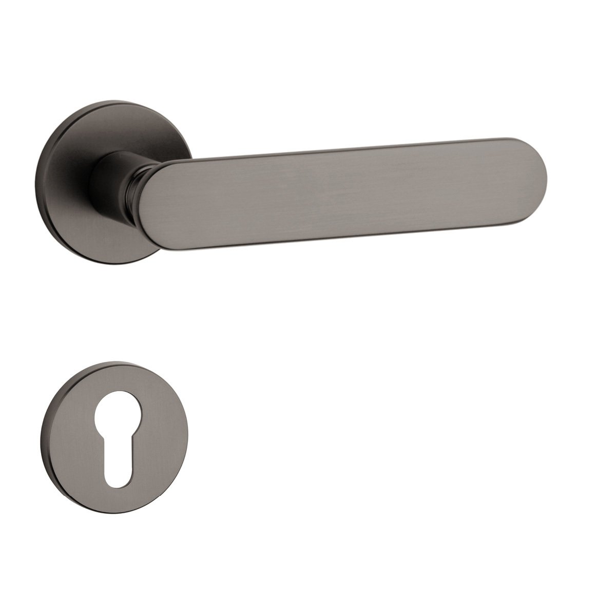 Rozetová klika na interiérové dveře s kulatou rozetou je vyrobena z materiálů vysoké kvality - zamak a je povrchově upravena. Rozeta má průměr 52 mm a tloušťku jen 7 mm. Minimalistický design rozety s vysokou stabilitou kliky na dveřích působí jemně, a tím ponechává prostor pro vyniknutí designu samotné kliky.