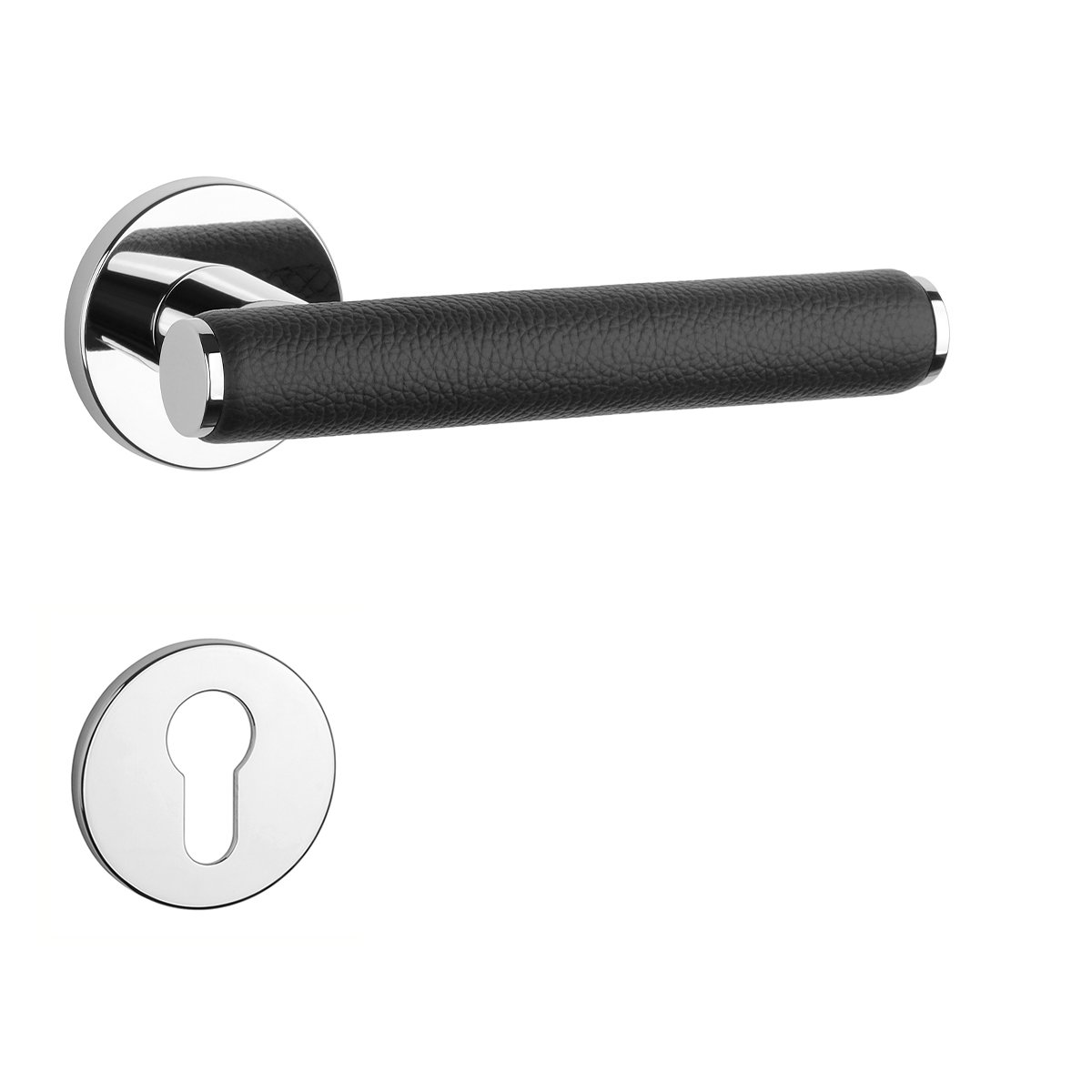 AS - EGERIA - R 7S OC - ​​Chrom lesklý / černá kůže - rozety PZ - koule/klika levá (4/8)