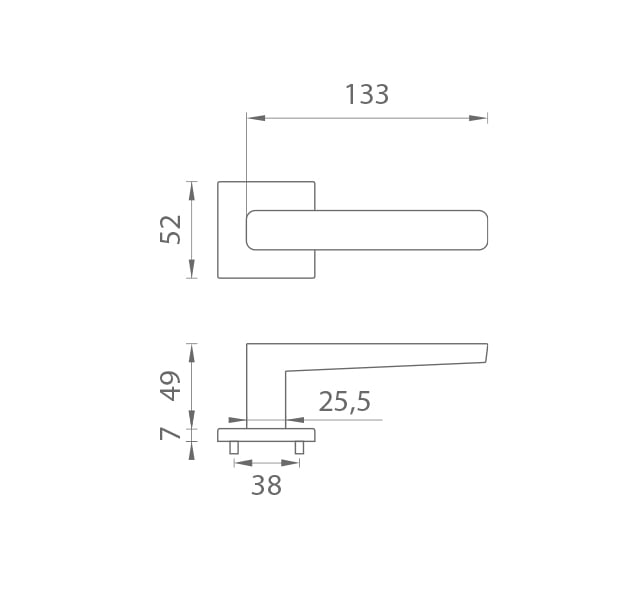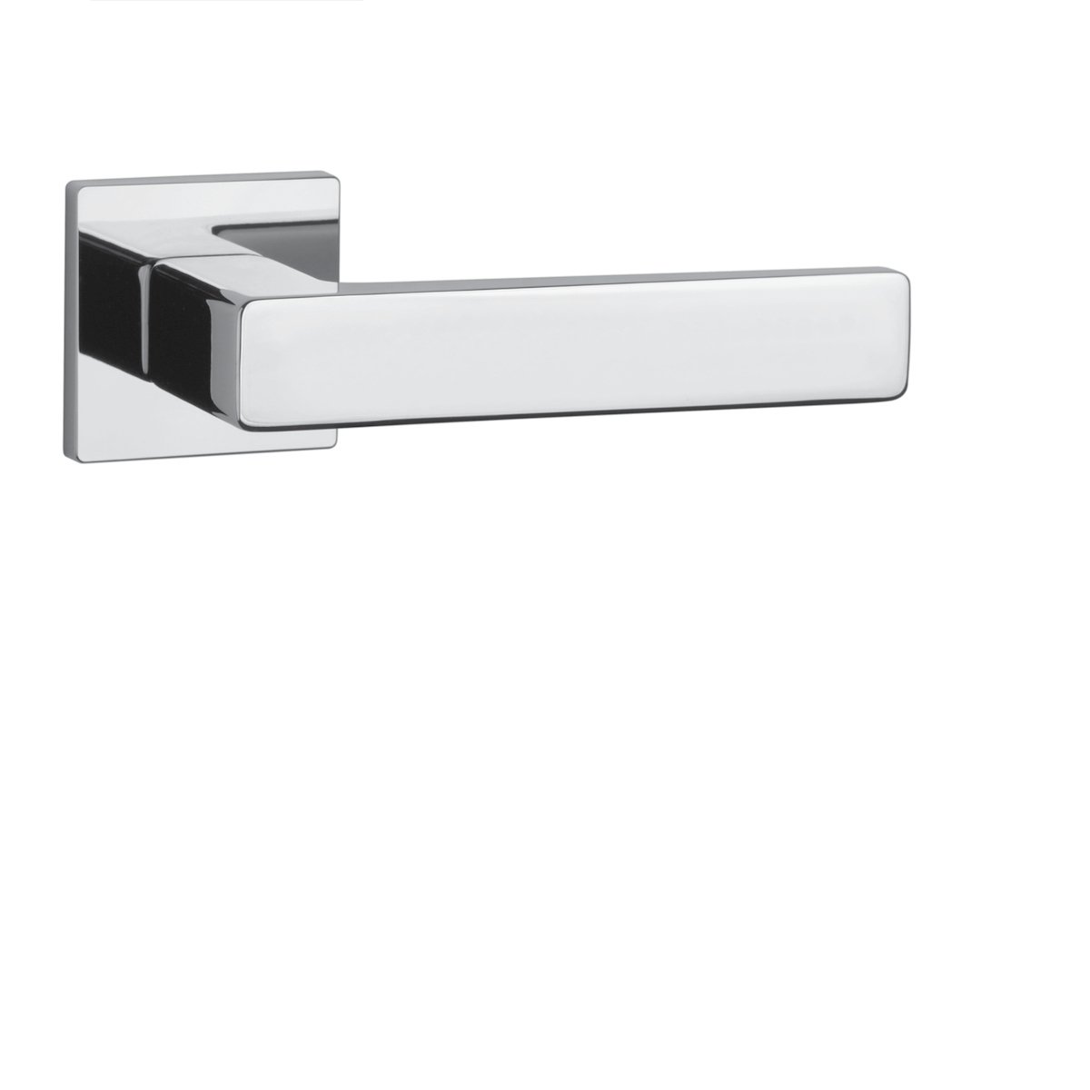 Rozetová klika na interiérové dveře s hranatou rozetou je vyrobena z materiálů vysoké kvality - zamak a je povrchově upravena. Rozeta má rozměry 52x52 mm a tloušťku jen 7 mm. Minimalistický design rozety s vysokou stabilitou kliky na dveřích působí jemně, a tím ponechává prostor pro vyniknutí designu samotné kliky.