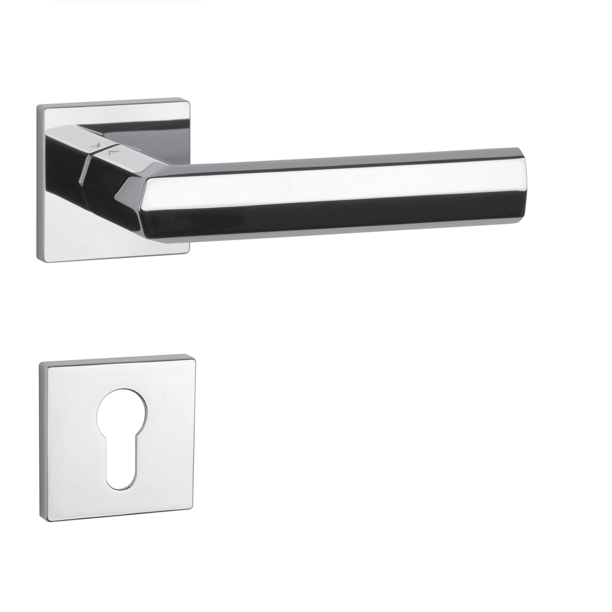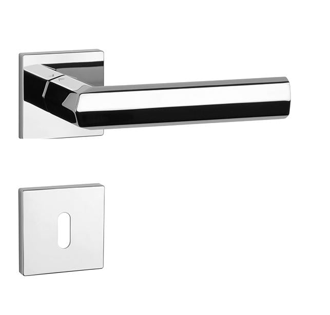 Rozetová klika na interiérové dveře s hranatou rozetou je vyrobena z materiálů vysoké kvality - zamak a je povrchově upravena. Rozeta má rozměry 52x52 mm a tloušťku jen 7 mm. Minimalistický design rozety s vysokou stabilitou kliky na dveřích působí jemně, a tím ponechává prostor pro vyniknutí designu samotné kliky.