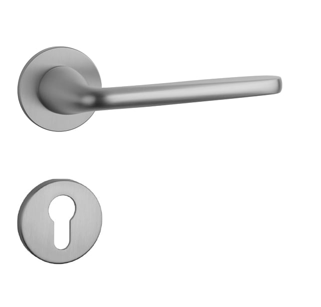 Rozetová klika na interiérové dveře s kulatou rozetou je vyrobena z materiálů vysoké kvality - zamak a je povrchově upravena. Rozeta má průměr 52 mm a tloušťku jen 5 mm. Minimalistický design rozety s vysokou stabilitou kliky na dveřích působí jemně, a tím ponechává prostor pro vyniknutí designu samotné kliky.