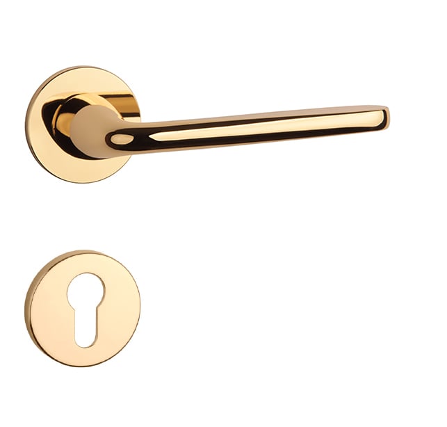Rozetová klika na interiérové dveře s kulatou rozetou je vyrobena z materiálů vysoké kvality - zamak a je povrchově upravena. Rozeta má průměr 52 mm a tloušťku jen 5 mm. Minimalistický design rozety s vysokou stabilitou kliky na dveřích působí jemně, a tím ponechává prostor pro vyniknutí designu samotné kliky.