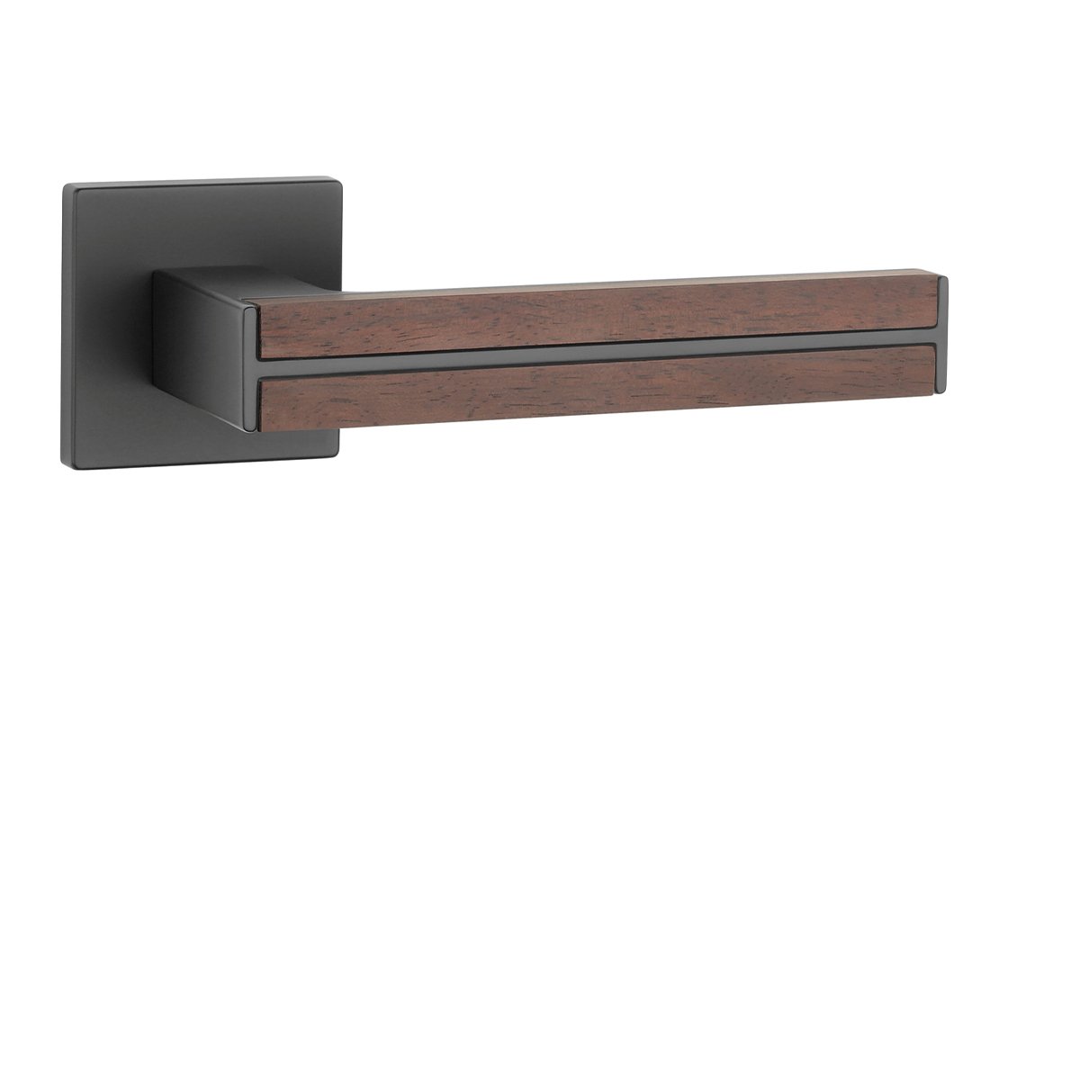Rozetová klika na interiérové dveře s hranatou oblou rozetou je vyrobená z materiálů vysoké kvality - zamak a je povrchově upravená. Klika působí stylově a moderně, což podtrhuje i kombinace černé barvy s santalovým dřevem. Tento dekorační prvek jí dodává unikátní vzhled a navozuje příjemný pocit tepla a přírody.