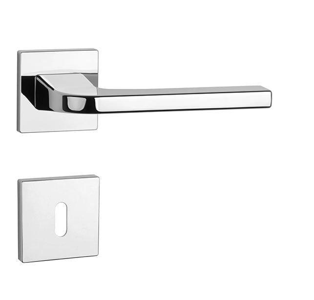 Rozetová klika na interiérové dveře s hranatou rozetou je vyrobena z materiálů vysoké kvality - zamak a je povrchově upravena. Rozeta má rozměr 52x52 mm a tloušťku jen 7 mm. Minimalistický design rozety s vysokou stabilitou kliky na dveřích působí jemně, a tím ponechává prostor pro vyniknutí designu samotné kliky.