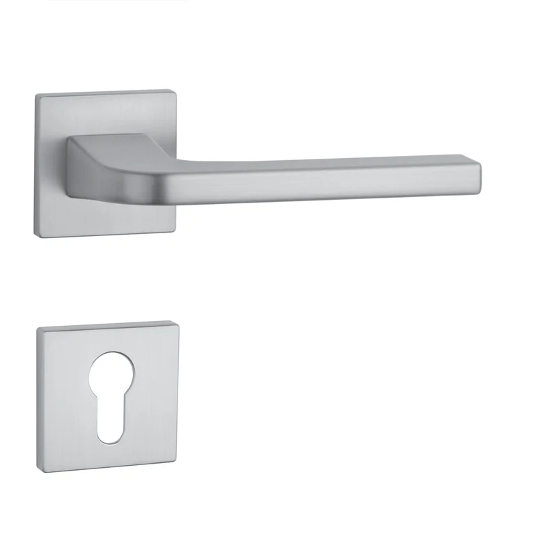 Rozetová klika na interiérové dveře s hranatou rozetou je vyrobena z materiálů vysoké kvality - zamak a je povrchově upravena. Rozeta má rozměr 52x52 mm a tloušťku jen 7 mm. Minimalistický design rozety s vysokou stabilitou kliky na dveřích působí jemně, a tím ponechává prostor pro vyniknutí designu samotné kliky.