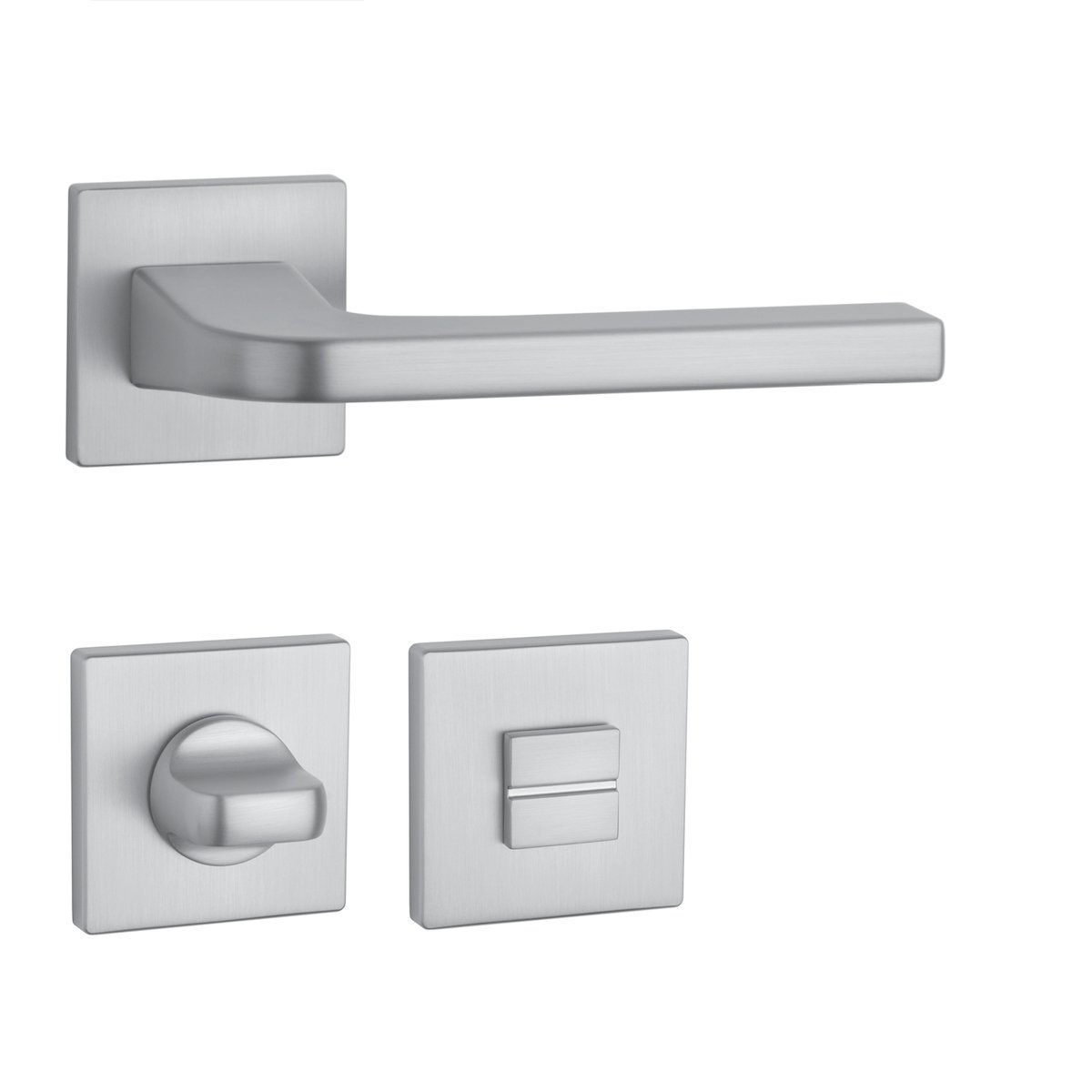 Rozetová klika na interiérové dveře s hranatou rozetou je vyrobena z materiálů vysoké kvality - zamak a je povrchově upravena. Rozeta má rozměr 52x52 mm a tloušťku jen 7 mm. Minimalistický design rozety s vysokou stabilitou kliky na dveřích působí jemně, a tím ponechává prostor pro vyniknutí designu samotné kliky.