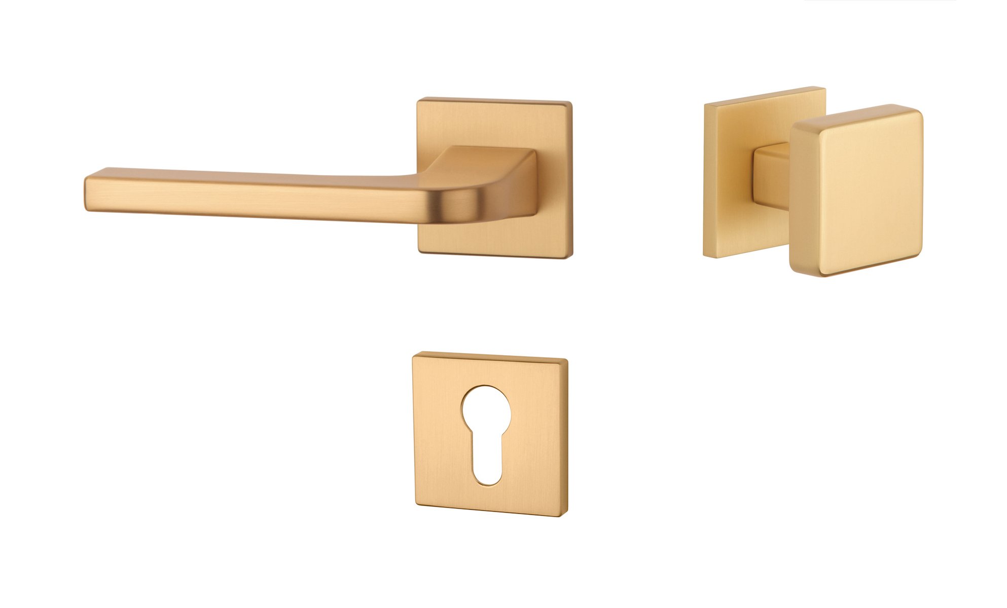 Rozetová klika na interiérové dveře s hranatou rozetou je vyrobena z materiálů vysoké kvality - zamak a je povrchově upravena. Rozeta má rozměr 52x52 mm a tloušťku jen 7 mm. Minimalistický design rozety s vysokou stabilitou kliky na dveřích působí jemně, a tím ponechává prostor pro vyniknutí designu samotné kliky.