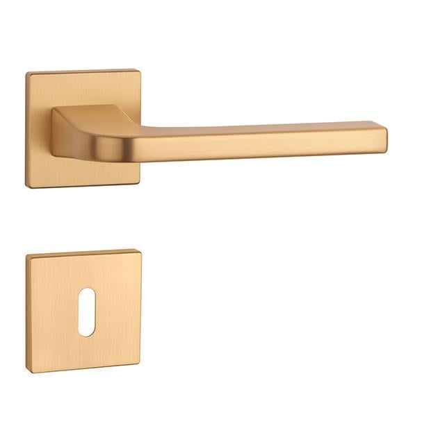 Rozetová klika na interiérové dveře s hranatou rozetou je vyrobena z materiálů vysoké kvality - zamak a je povrchově upravena. Rozeta má rozměr 52x52 mm a tloušťku jen 7 mm. Minimalistický design rozety s vysokou stabilitou kliky na dveřích působí jemně, a tím ponechává prostor pro vyniknutí designu samotné kliky.
