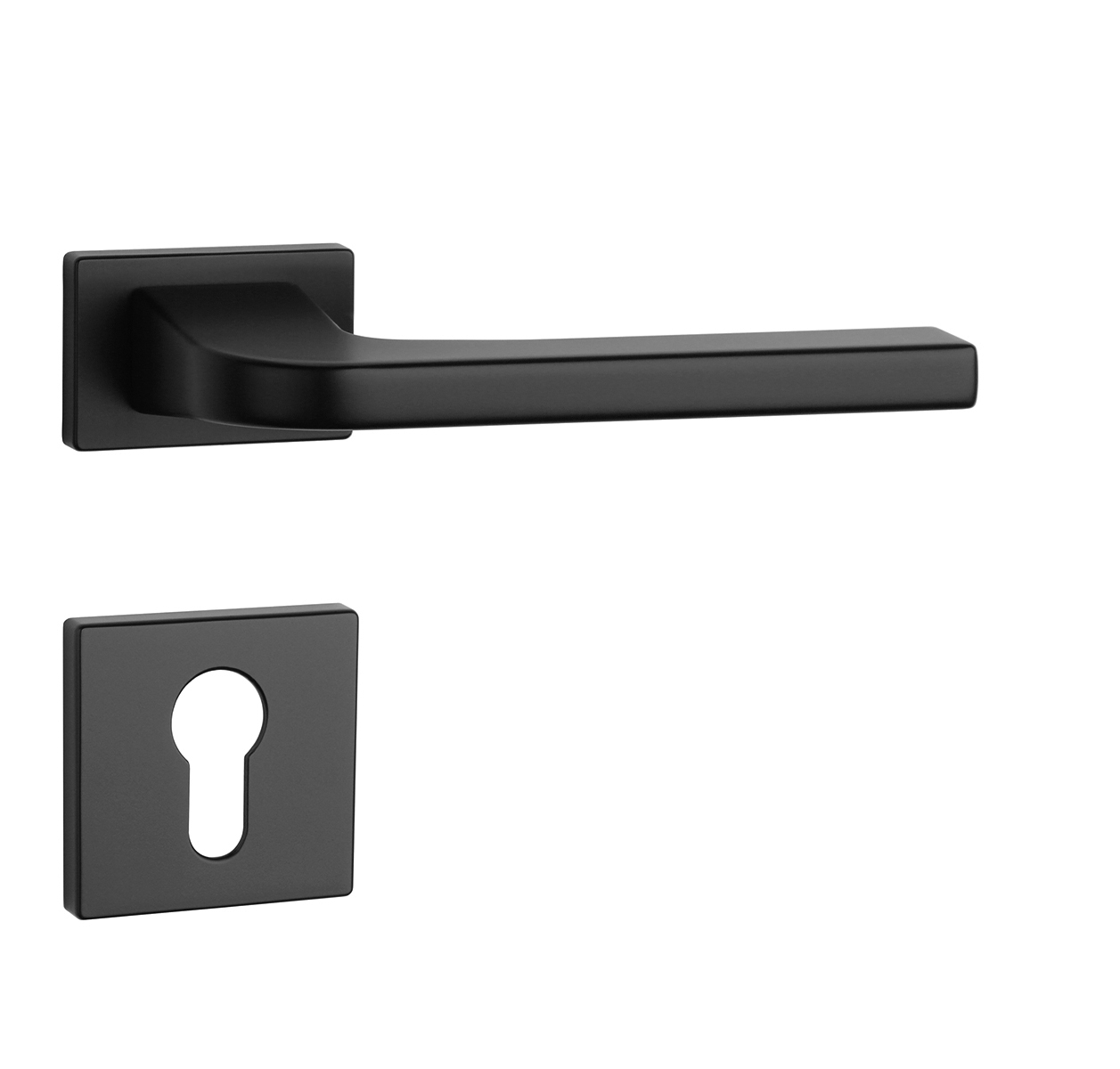 Rozetová klika na interiérové dveře s obdélníkovou rozetou je vyrobena z materiálů vysoké kvality - zamak a je povrchově upravena. Rozeta má rozměr 50 x 33 mm a tloušťku jen 7 mm. Minimalistický design rozety s vysokou stabilitou kliky na dveřích působí jemně, a tím ponechává prostor pro vyniknutí designu samotné kliky.