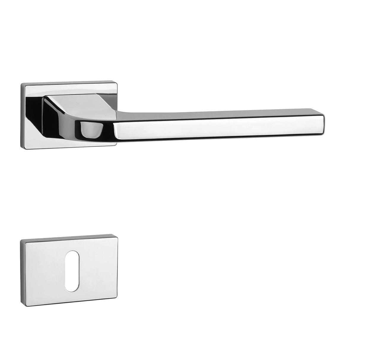 Rozetová klika na interiérové dveře s obdélníkovou rozetou je vyrobena z materiálů vysoké kvality - zamak a je povrchově upravena. Rozeta má rozměr 50 x 33 mm a tloušťku jen 7 mm. Minimalistický design rozety s vysokou stabilitou kliky na dveřích působí jemně, a tím ponechává prostor pro vyniknutí designu samotné kliky.