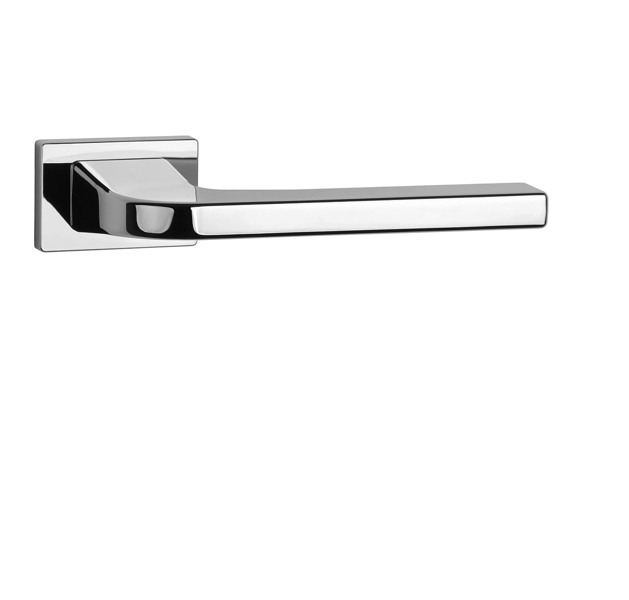 Rozetová klika na interiérové dveře s obdélníkovou rozetou je vyrobena z materiálů vysoké kvality - zamak a je povrchově upravena. Rozeta má rozměr 50 x 33 mm a tloušťku jen 7 mm. Minimalistický design rozety s vysokou stabilitou kliky na dveřích působí jemně, a tím ponechává prostor pro vyniknutí designu samotné kliky.
