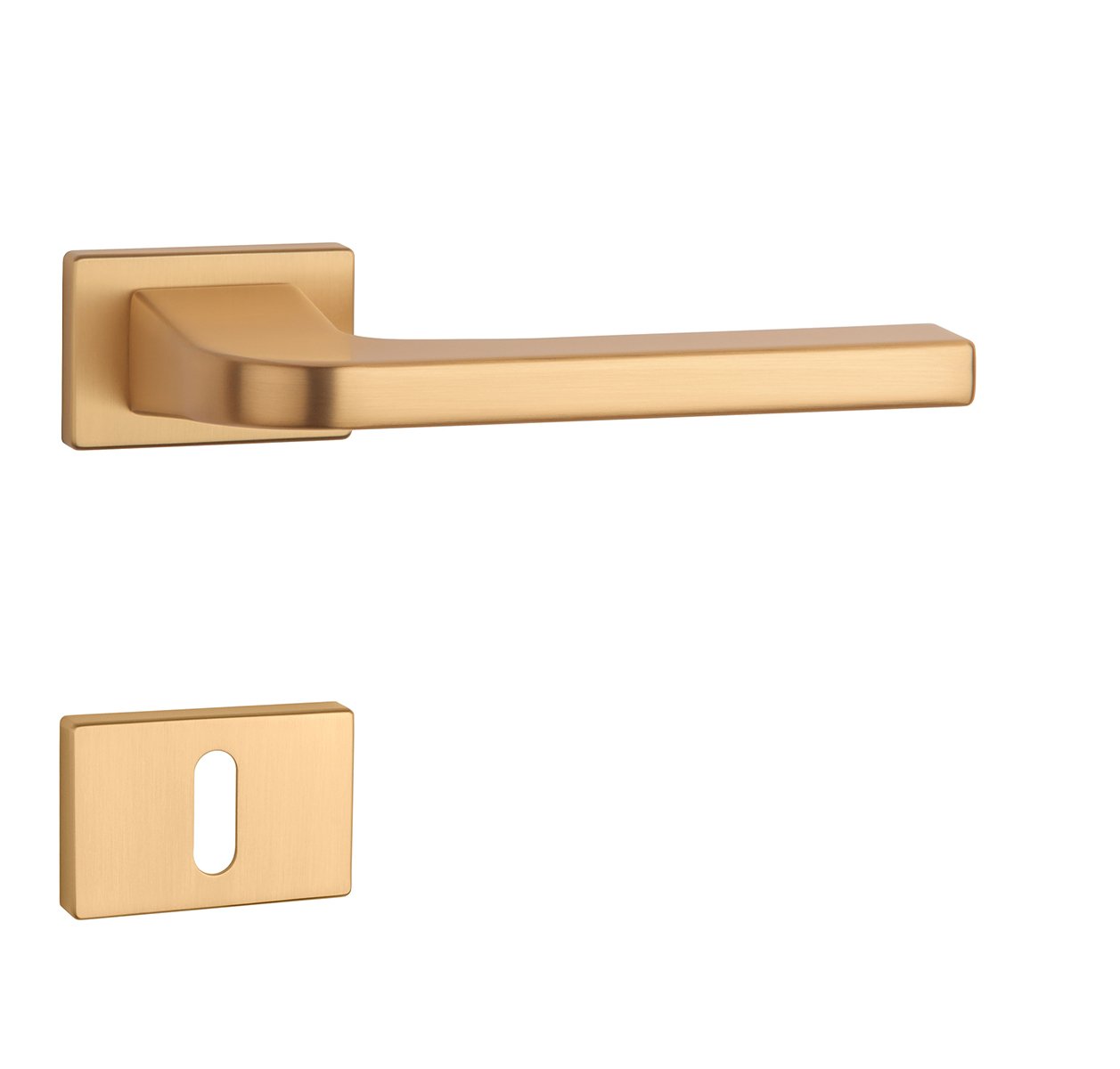 Rozetová klika na interiérové dveře s obdélníkovou rozetou je vyrobena z materiálů vysoké kvality - zamak a je povrchově upravena. Rozeta má rozměr 50 x 33 mm a tloušťku jen 7 mm. Minimalistický design rozety s vysokou stabilitou kliky na dveřích působí jemně, a tím ponechává prostor pro vyniknutí designu samotné kliky.