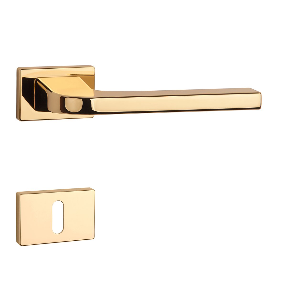 Rozetová klika na interiérové dveře s obdélníkovou rozetou je vyrobena z materiálů vysoké kvality - zamak a je povrchově upravena. Rozeta má rozměr 50 x 33 mm a tloušťku jen 7 mm. Minimalistický design rozety s vysokou stabilitou kliky na dveřích působí jemně, a tím ponechává prostor pro vyniknutí designu samotné kliky.