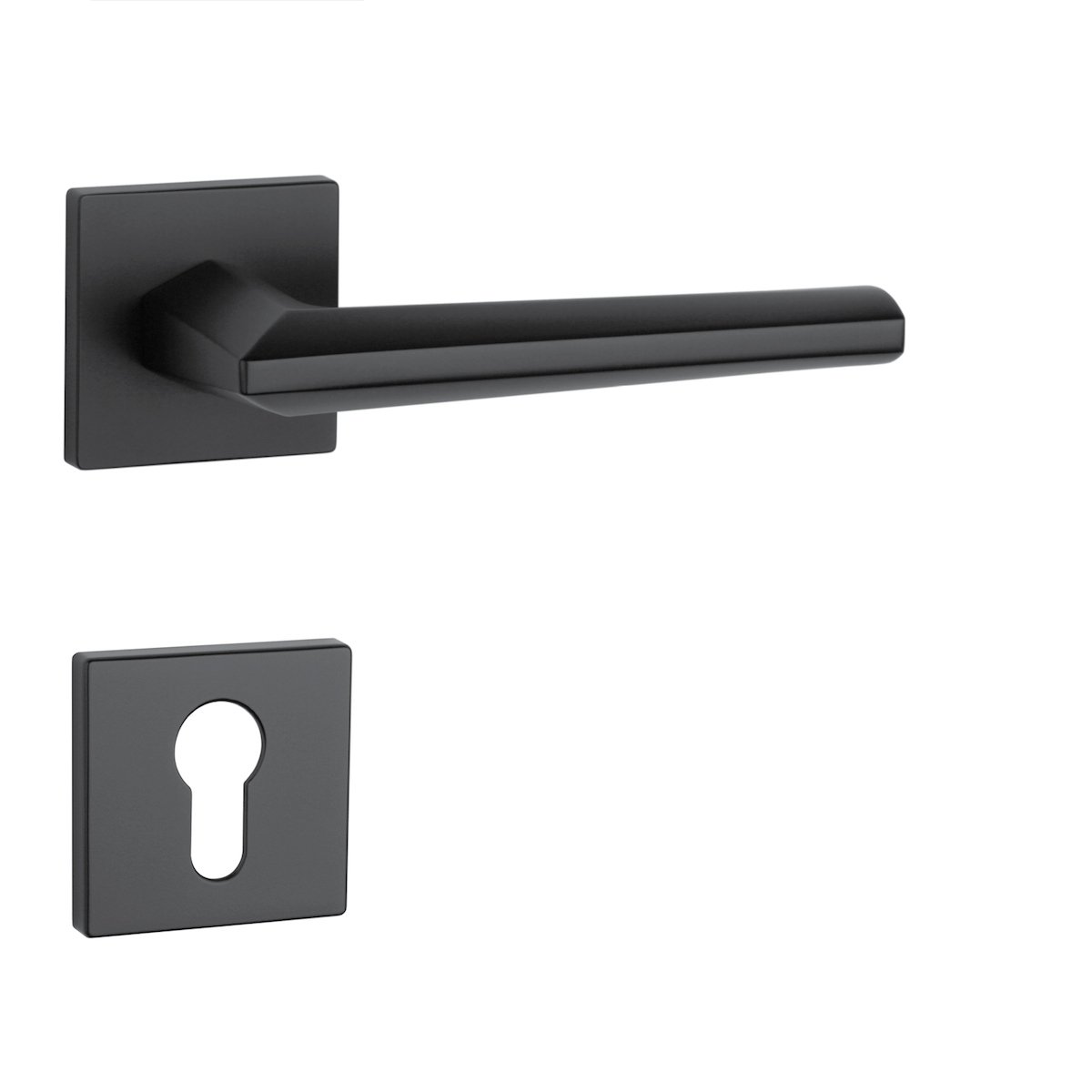 Rozetová klika na interiérové dveře s hranatou rozetou je vyrobena z materiálů vysoké kvality - zamak a je povrchově upravena. Rozeta má rozměry 52x52 mm a tloušťku jen 7 mm. Minimalistický design rozety s vysokou stabilitou kliky na dveřích působí jemně, a tím ponechává prostor pro vyniknutí designu samotné kliky.