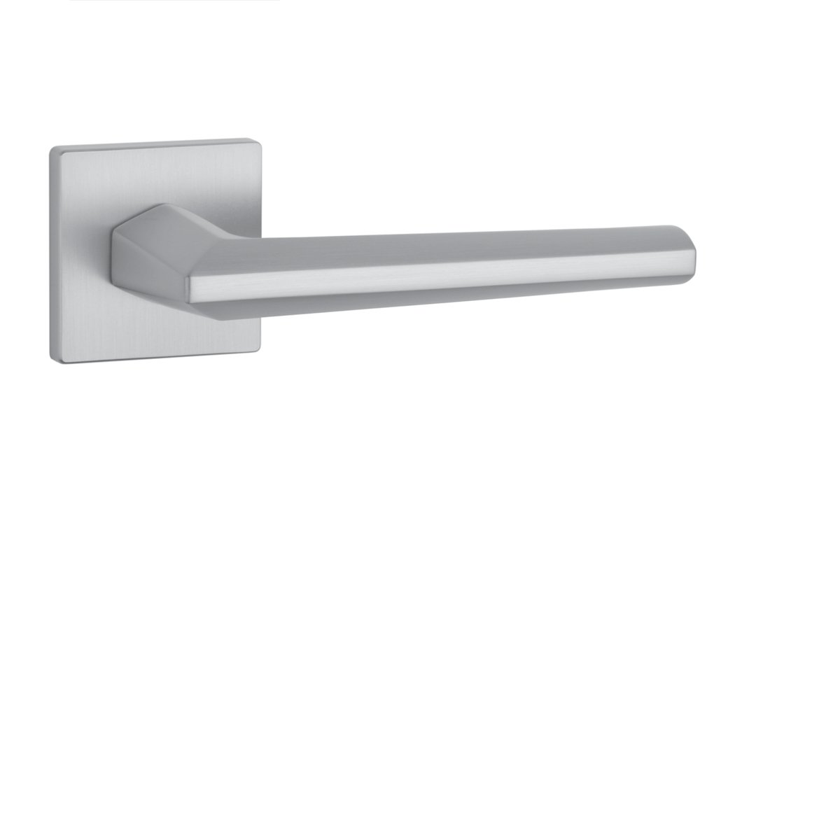 Rozetová klika na interiérové dveře s hranatou rozetou je vyrobena z materiálů vysoké kvality - zamak a je povrchově upravena. Rozeta má rozměry 52x52 mm a tloušťku jen 7 mm. Minimalistický design rozety s vysokou stabilitou kliky na dveřích působí jemně, a tím ponechává prostor pro vyniknutí designu samotné kliky.