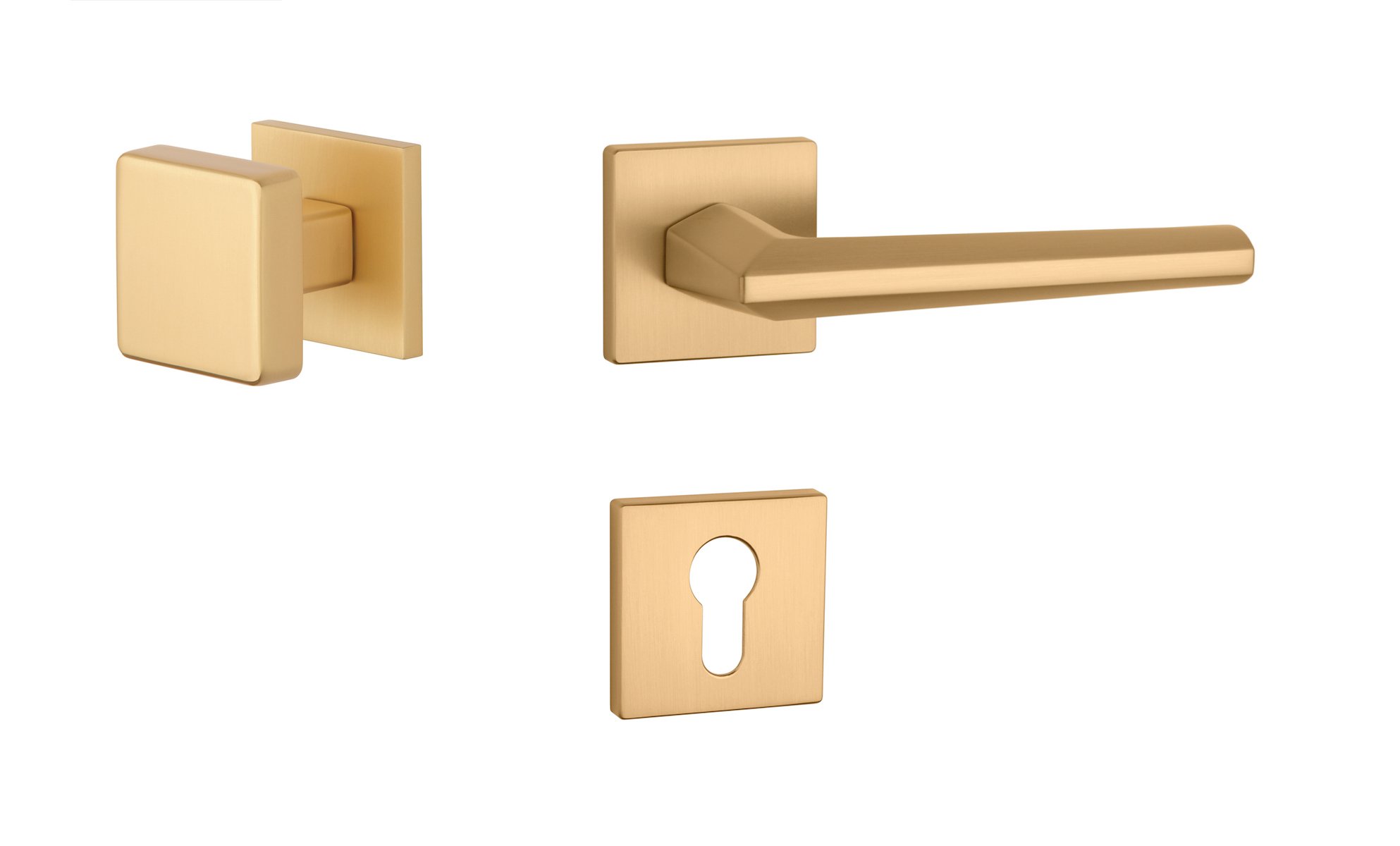 Rozetová klika na interiérové dveře s hranatou rozetou je vyrobena z materiálů vysoké kvality - zamak a je povrchově upravena. Rozeta má rozměry 52x52 mm a tloušťku jen 7 mm. Minimalistický design rozety s vysokou stabilitou kliky na dveřích působí jemně, a tím ponechává prostor pro vyniknutí designu samotné kliky.