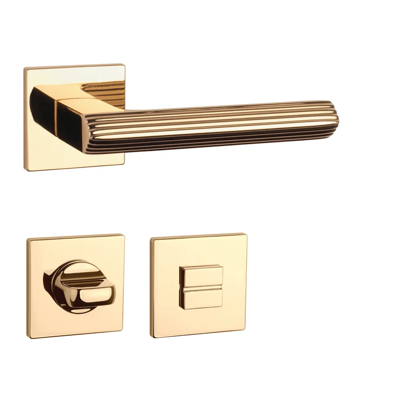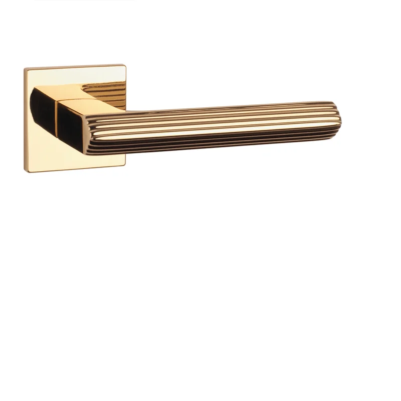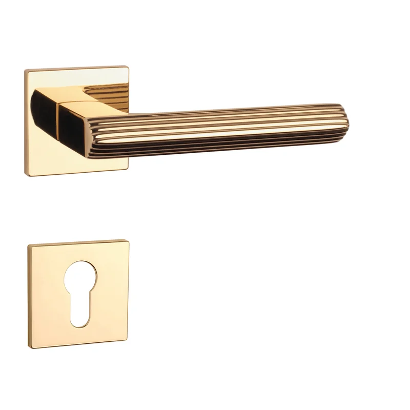 Rozetová klika na interiérové dveře s hranatou rozetou je vyrobena z materiálů vysoké kvality - zamak a je povrchově upravena. Rozeta má rozměr 52x52 mm a tloušťku jen 5 mm. Minimalistický design rozety s vysokou stabilitou kliky na dveřích působí jemně, a tím ponechává prostor pro vyniknutí designu samotné kliky.