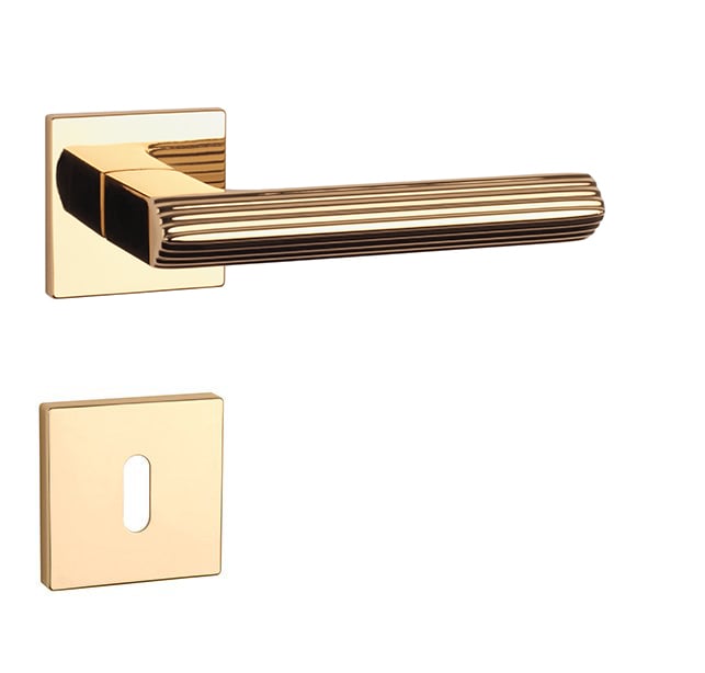Rozetová klika na interiérové dveře s hranatou rozetou je vyrobena z materiálů vysoké kvality - zamak a je povrchově upravena. Rozeta má rozměr 52x52 mm a tloušťku jen 5 mm. Minimalistický design rozety s vysokou stabilitou kliky na dveřích působí jemně, a tím ponechává prostor pro vyniknutí designu samotné kliky.