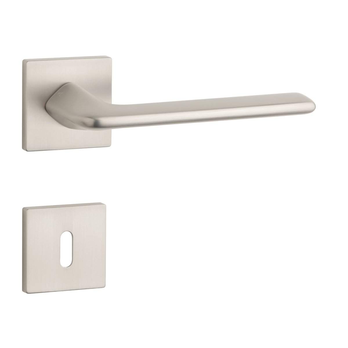 Rozetová klika na interiérové dveře s hranatou rozetou je vyrobena z materiálů vysoké kvality - zamak a je povrchově upravena. Rozeta má rozměr 52x52 mm a tloušťku jen 7 mm.
