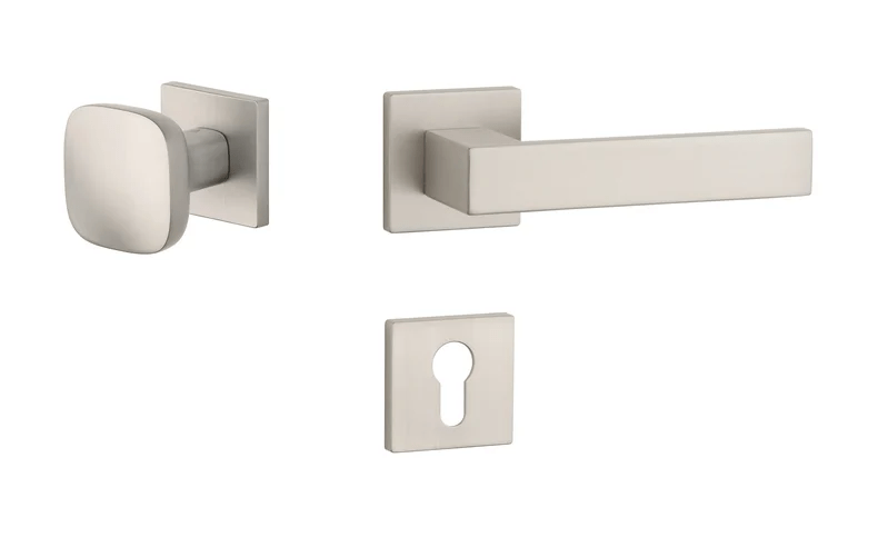 Rozetová klika na interiérové dveře s hranatou rozetou je vyrobena z materiálů vysoké kvality - zamak a je povrchově upravena. Rozeta má rozměr 52x52 mm a tloušťku jen 7 mm.