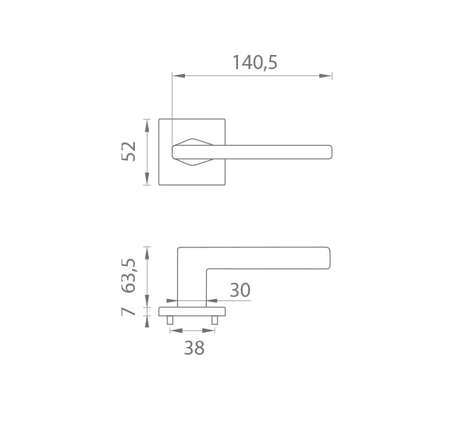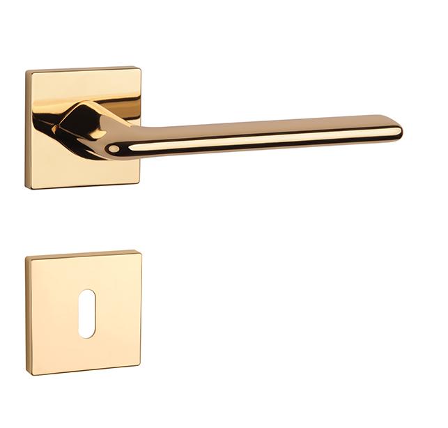 Rozetová klika na interiérové dveře s hranatou rozetou je vyrobena z materiálů vysoké kvality - zamak a je povrchově upravena. Rozeta má rozměry 52x52 mm a tloušťku jen 7 mm. Minimalistický design rozety s vysokou stabilitou kliky na dveřích působí jemně, a tím ponechává prostor pro vyniknutí designu samotné kliky.