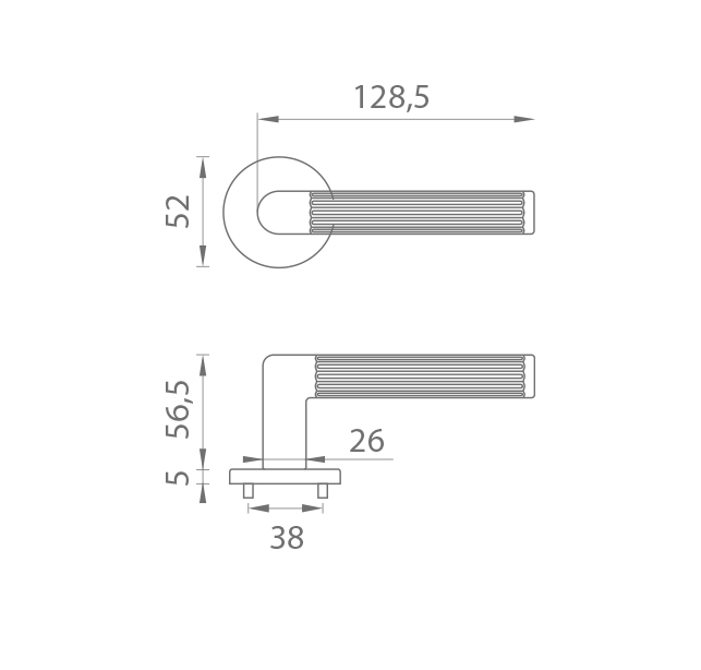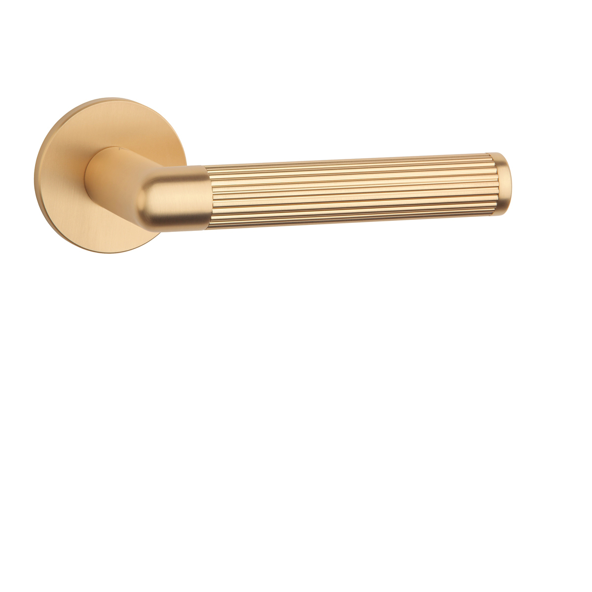 Rozetová klika na interiérové dveře s kulatou rozetou je vyrobena z materiálů vysoké kvality - zamak a je povrchově upravena. Rozeta má rozměr 52 mm a tloušťku jen 5 mm. Minimalistický design rozety s vysokou stabilitou kliky na dveřích působí jemně, a tím ponechává prostor pro vyniknutí designu samotné kliky.