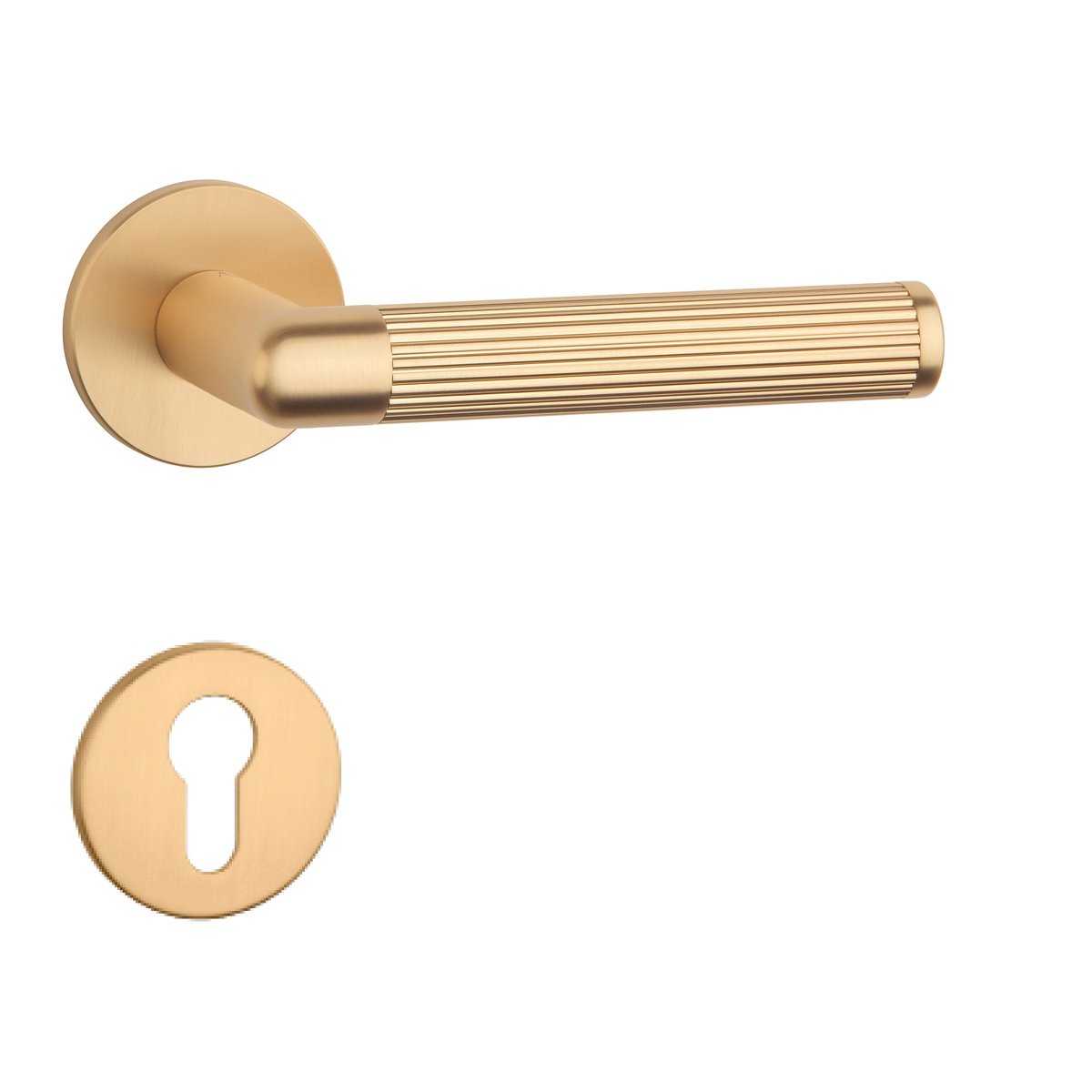 Rozetová klika na interiérové dveře s kulatou rozetou je vyrobena z materiálů vysoké kvality - zamak a je povrchově upravena. Rozeta má rozměr 52 mm a tloušťku jen 5 mm. Minimalistický design rozety s vysokou stabilitou kliky na dveřích působí jemně, a tím ponechává prostor pro vyniknutí designu samotné kliky.
