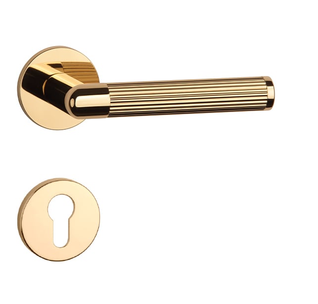 Rozetová klika na interiérové dveře s kulatou rozetou je vyrobena z materiálů vysoké kvality - zamak a je povrchově upravena. Rozeta má rozměr 52 mm a tloušťku jen 5 mm. Minimalistický design rozety s vysokou stabilitou kliky na dveřích působí jemně, a tím ponechává prostor pro vyniknutí designu samotné kliky.