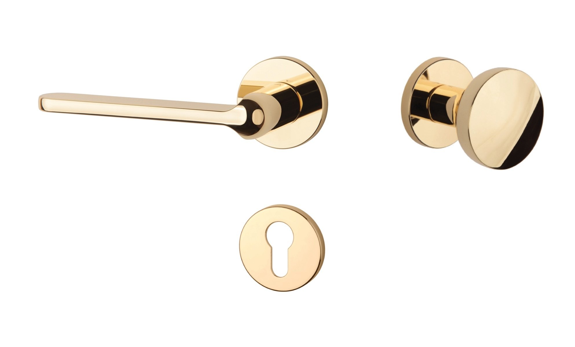 Rozetová klika na interiérové dveře s kulatou rozetou je vyrobena z materiálů vysoké kvality - zamak a je povrchově upravena. Rozeta má průměr 52 mm a tloušťku jen 7 mm. Minimalistický design rozety s vysokou stabilitou kliky na dveřích působí jemně, a tím ponechává prostor pro vyniknutí designu samotné kliky.