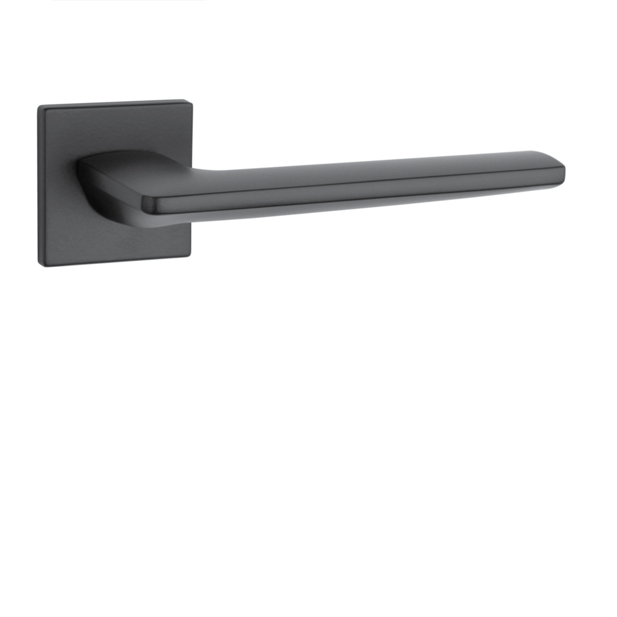 Rozetová klika na interiérové dveře s hranatou rozetou je vyrobena z materiálů vysoké kvality - zamak a je povrchově upravena. Rozeta má rozměry 52x52 mm a tloušťku jen 7 mm. Minimalistický design rozety s vysokou stabilitou kliky na dveřích působí jemně, a tím ponechává prostor pro vyniknutí designu samotné kliky.
